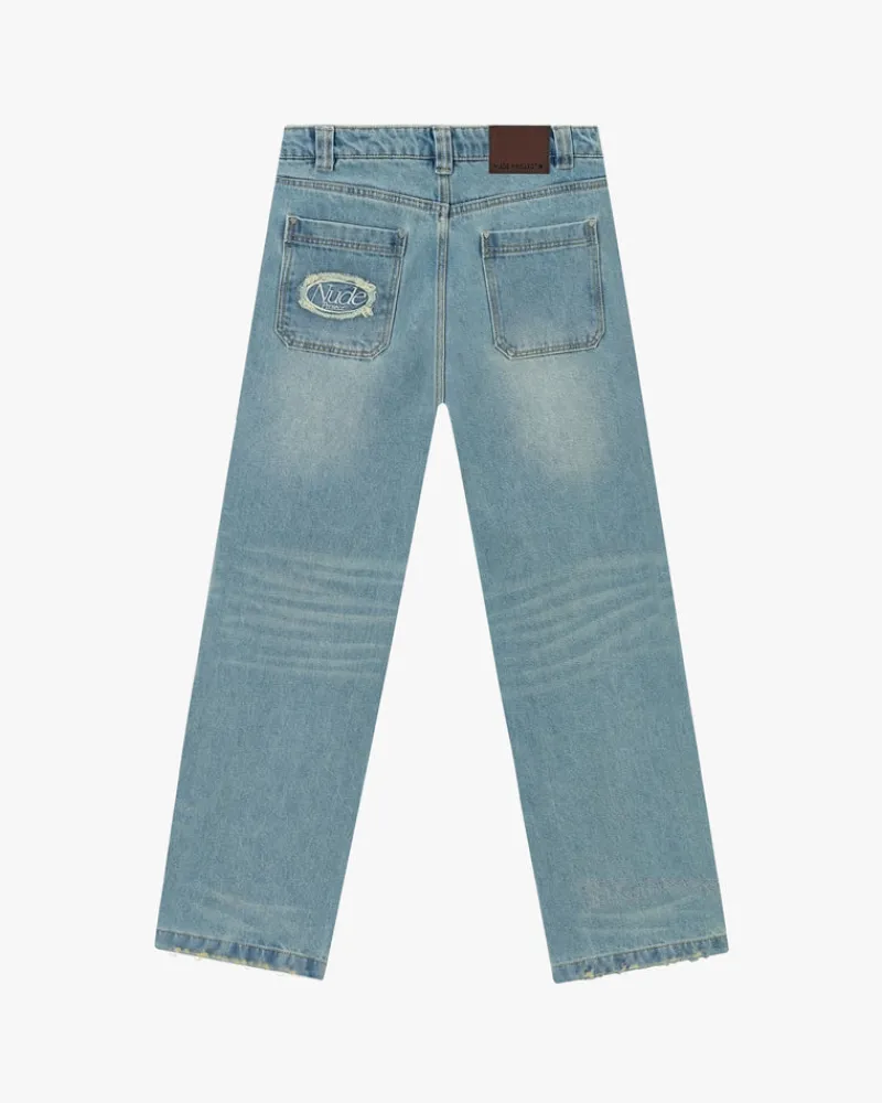 – Distressed effect on pocket , hem and waistband.