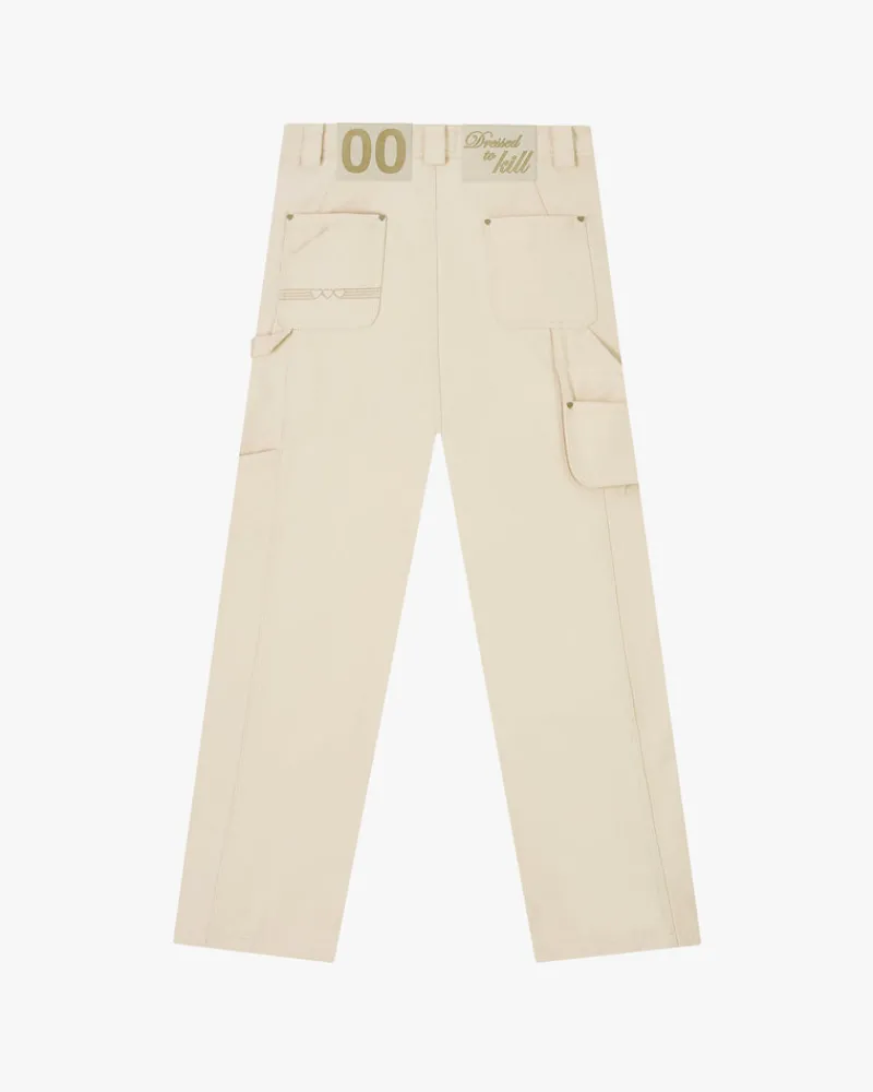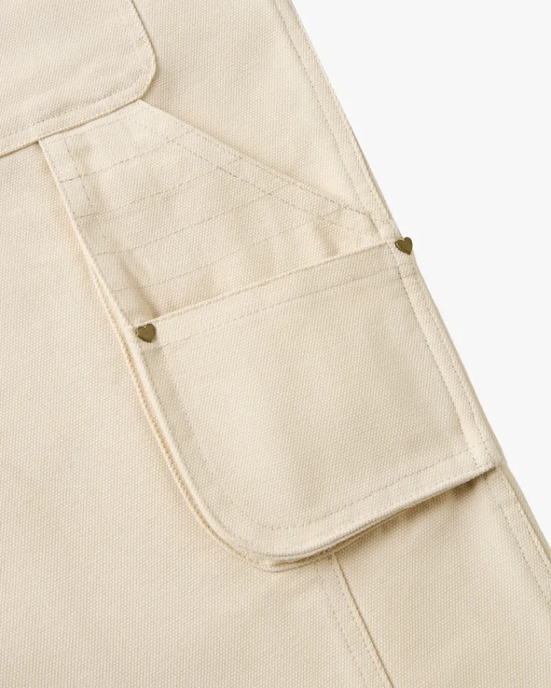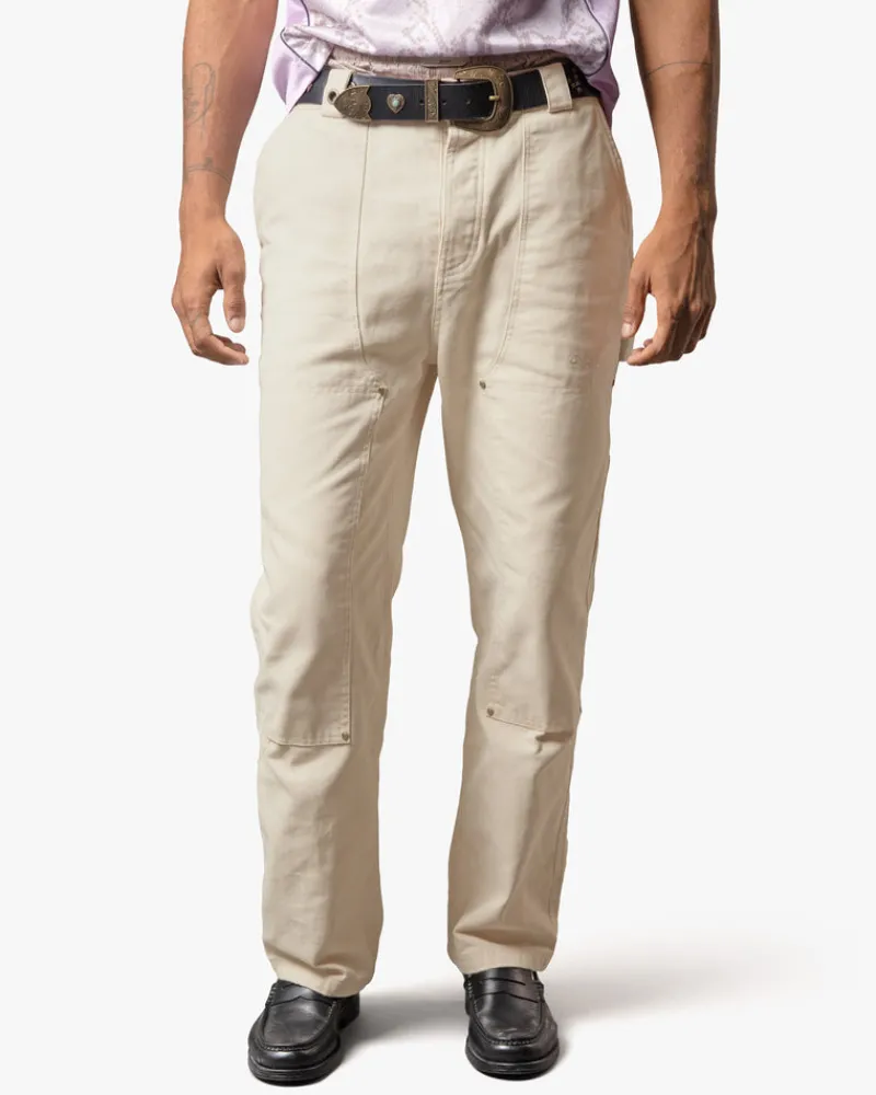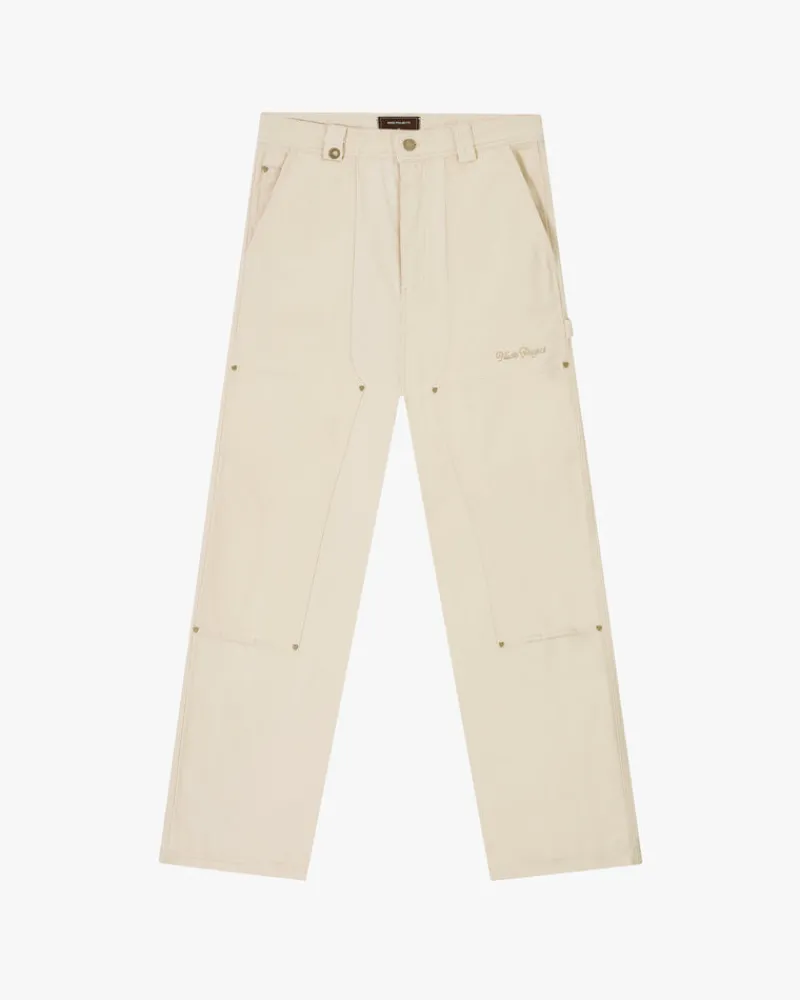 Heavy canvas pants, garment dye, front embroidery. It wears lining and back double jacron on the waistband. 100% Cotton….