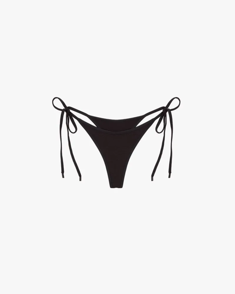 Composition:93%Polyester, 7%ElastaneFit:Brazilian.Graphic:Metal charm hanging on bottom.Technical Details:Black seaspong…
