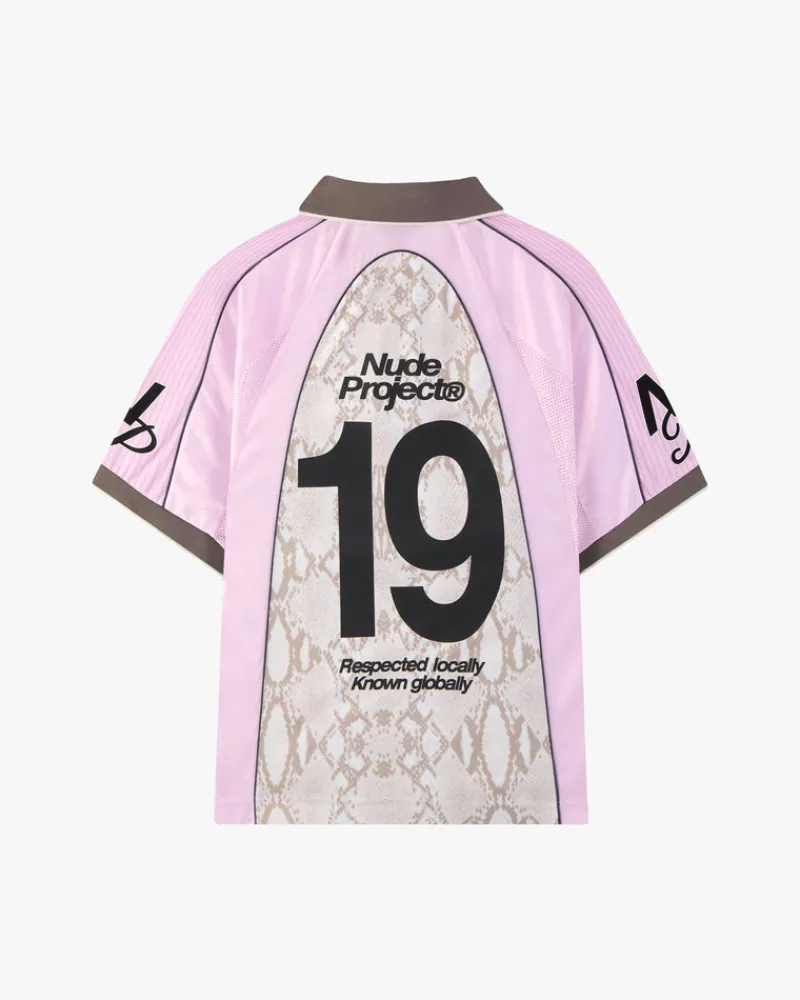 Football inspired tee with rib knit collar (100%Co) Rib knit ending on sleeves.Piping and sublimated patterns and screen…