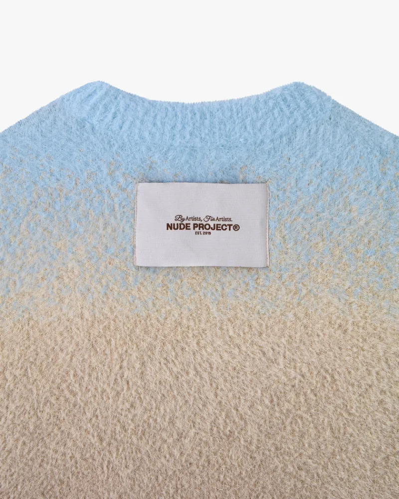 MATERIAL:Hairy knitted gradient sweater.Jacquard woven label on the back.COMPOSITION:99,9% Polyamida & 0,1% Elastane…