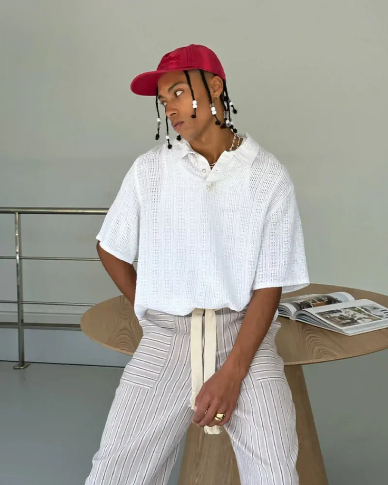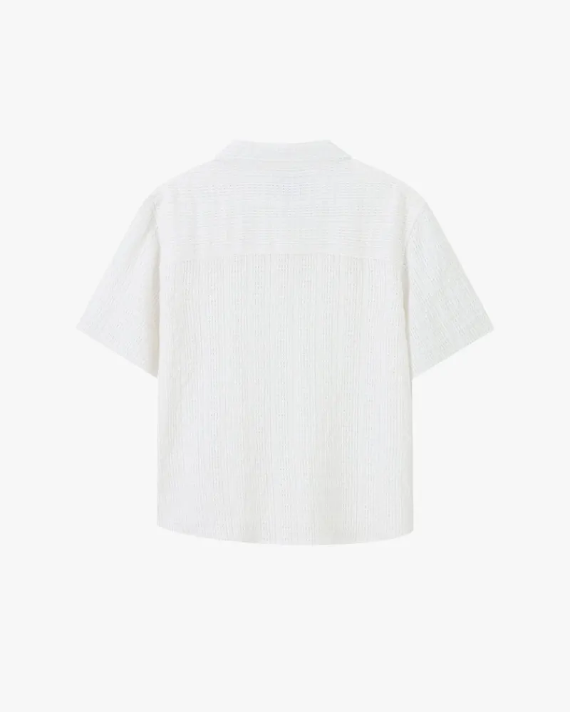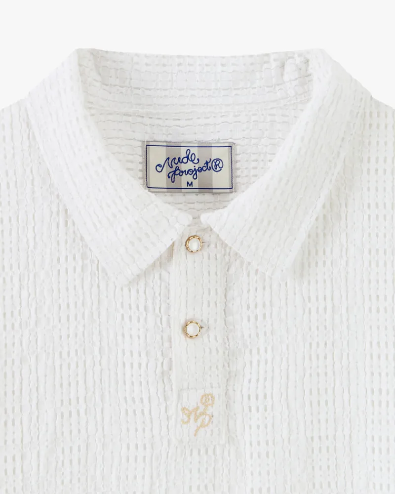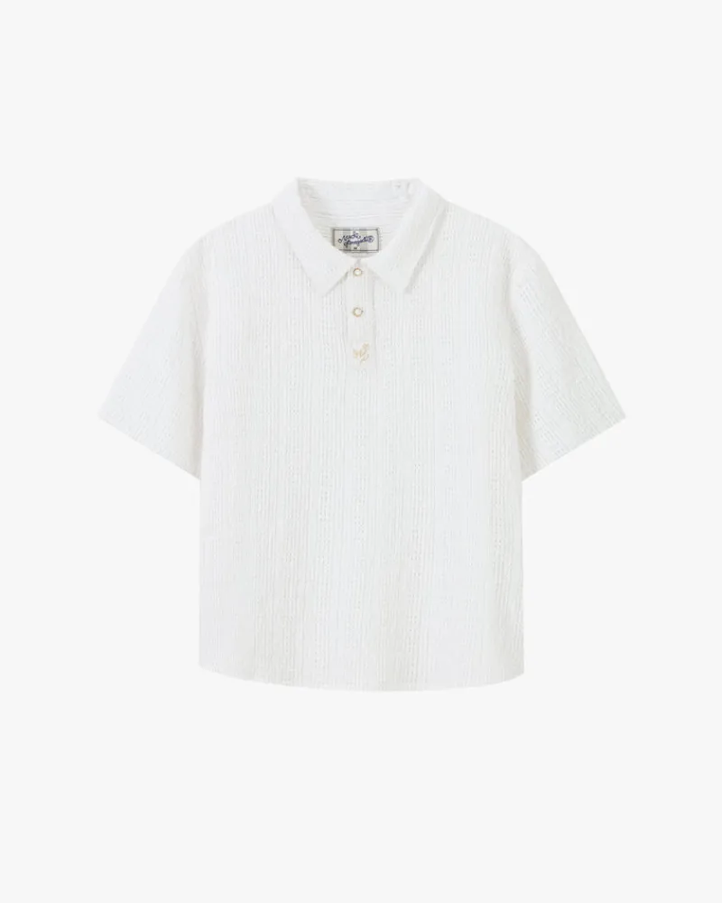 Composition:87% viscose 13% nylonFit:Boxy fitGraphic:Small embroidery under the front placketTechnical Details:Short sle…