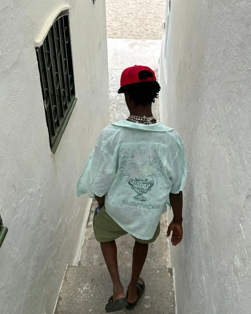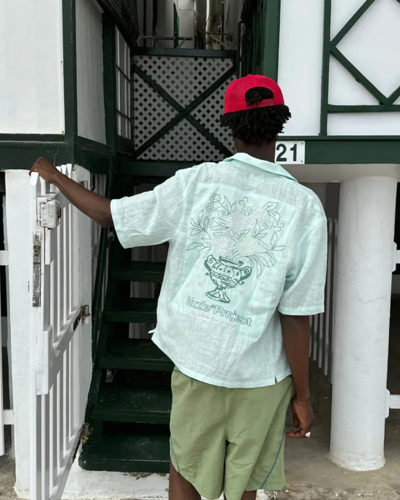 Composition: 80% Viscose, 20% Linen. Fit: Standard FitGraphic: Embroidery VaseTechnical Details: Double Linen Fabric P…