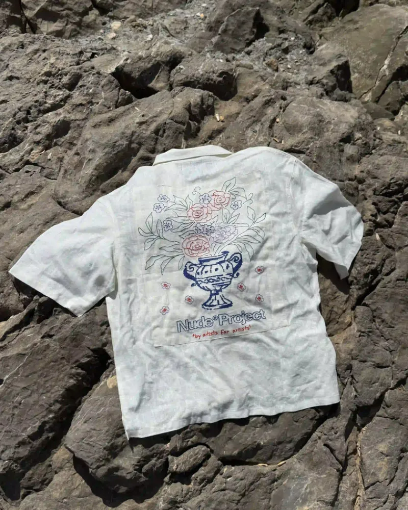Composition: 80% Viscose, 20% Linen. Fit: Standard FitGraphic: Embroidery VaseTechnical Details: Double Linen Fabric P…