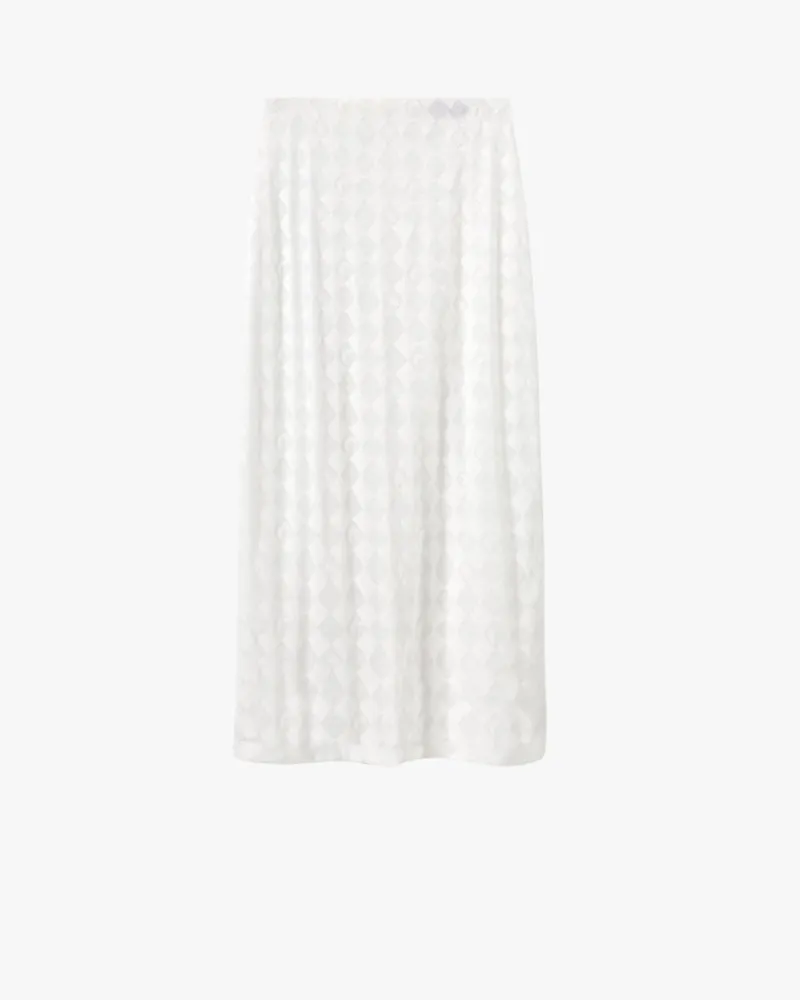 Composition:Body: 62% Polyester 38% CottonLining: 95% Polyester 5% ElastaneFit:Long Skirt With Back Cut.Graphic:Al Over …