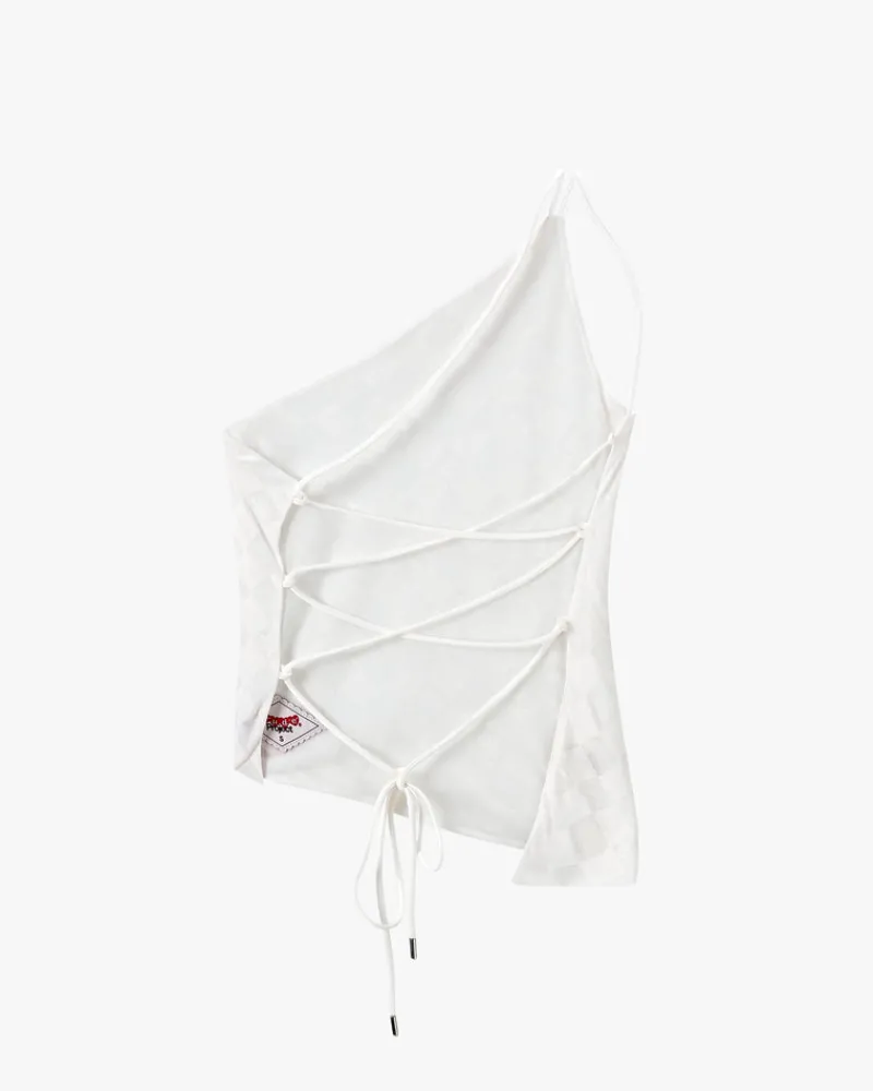 Composition:Body: 62% Polyester 38% CottonLining: 95% Polyester 5% ElastaneFit:Asymetric. Open Back Tied With Laces.Grap…