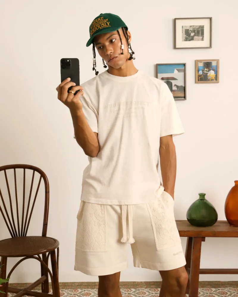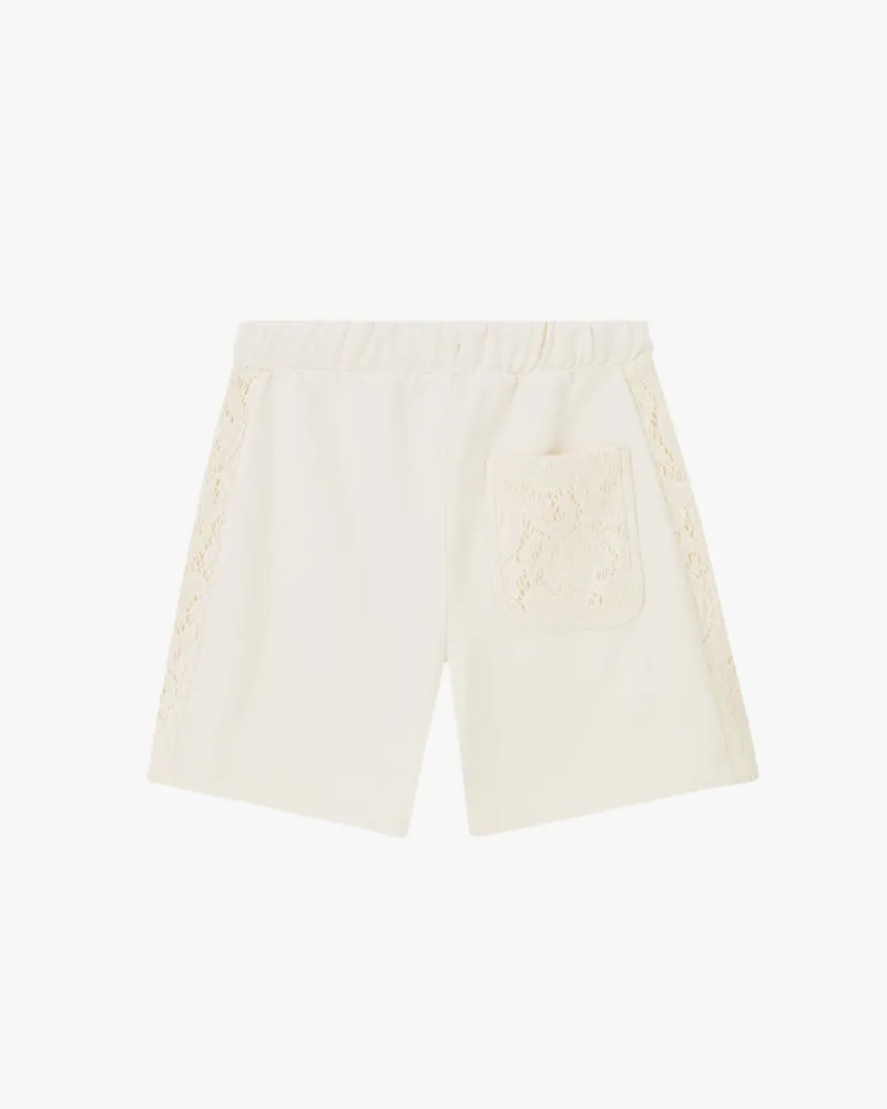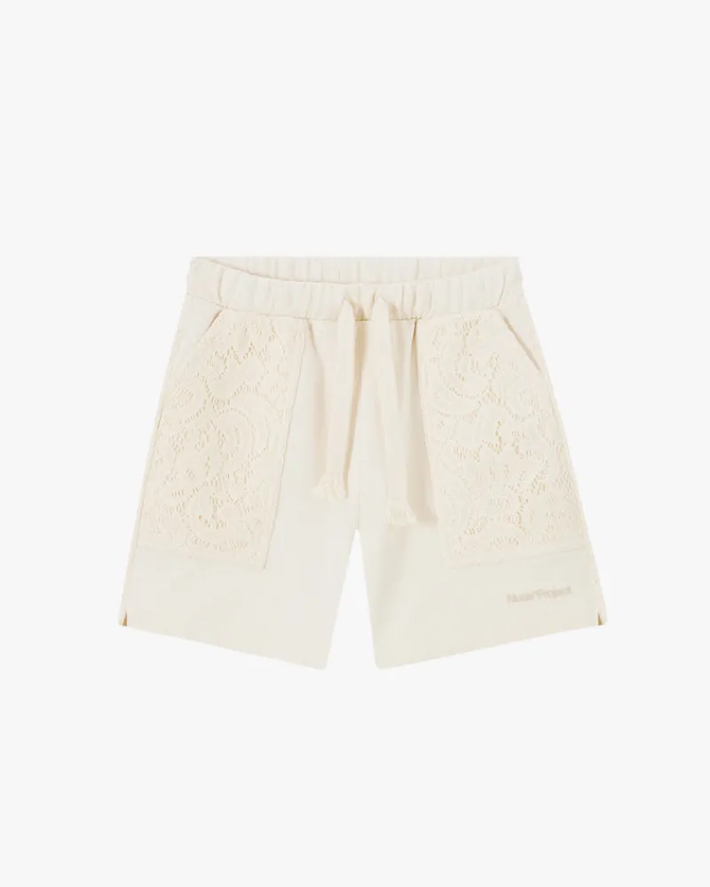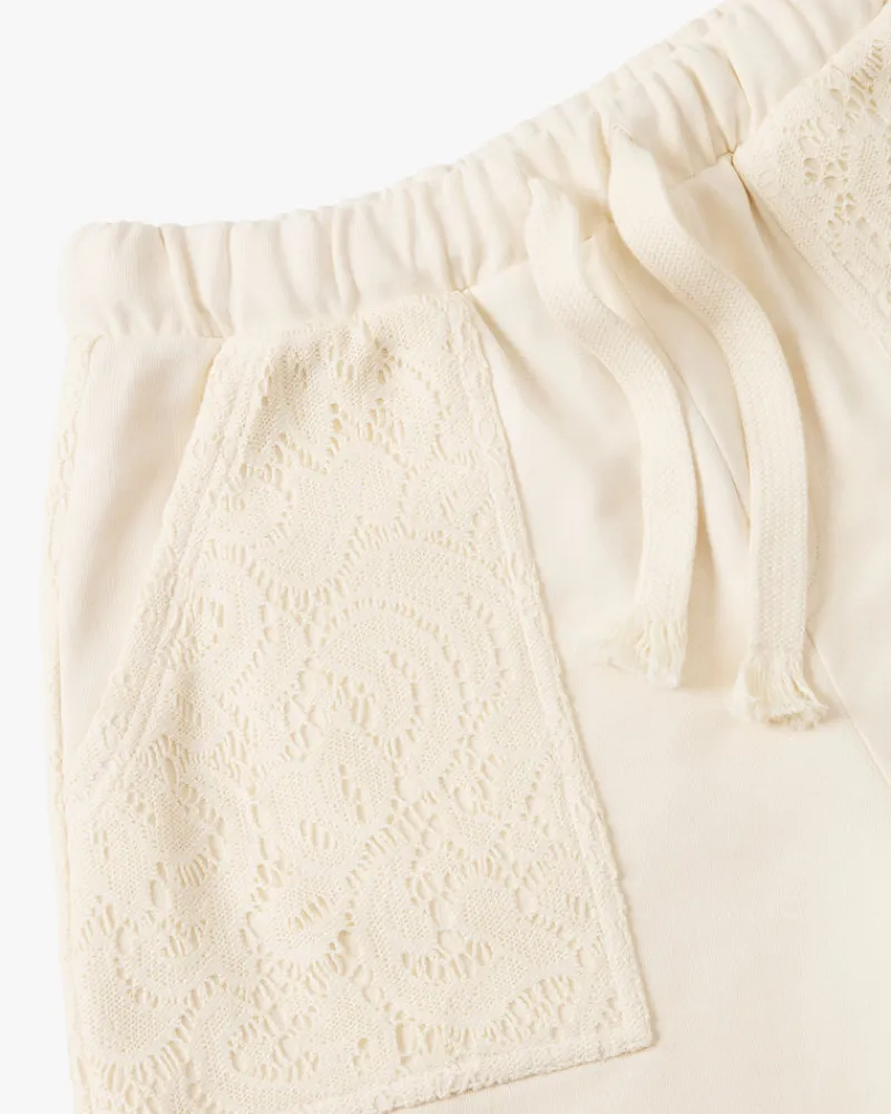 Composition:100% cottonFit:Standard fit Graphic: front fatigue pants with lace fabric patch Technical Details: