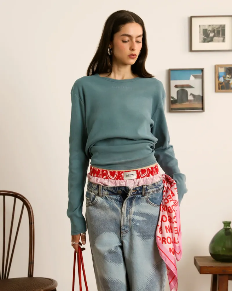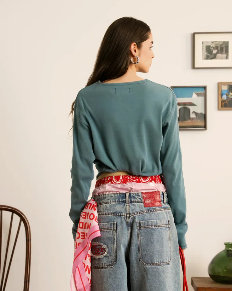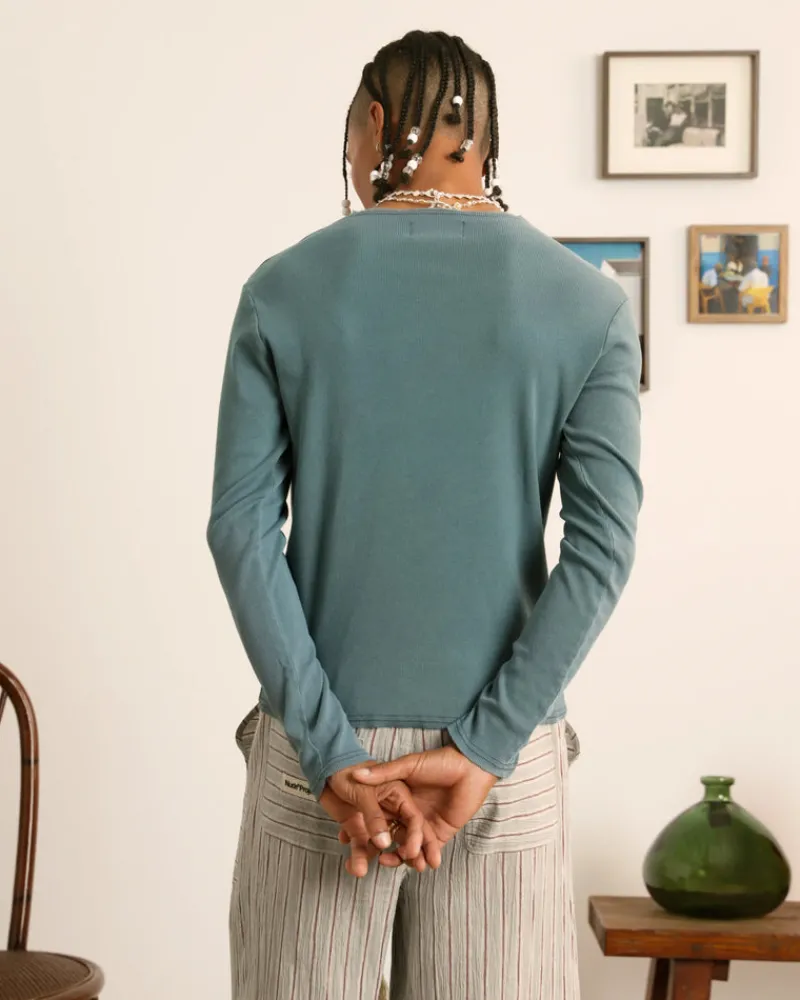 Composition:100% cotton ribbed fabricFit:Slim fitGraphic:Small print on front Technical Details: Long sleeve ribbed fabr…