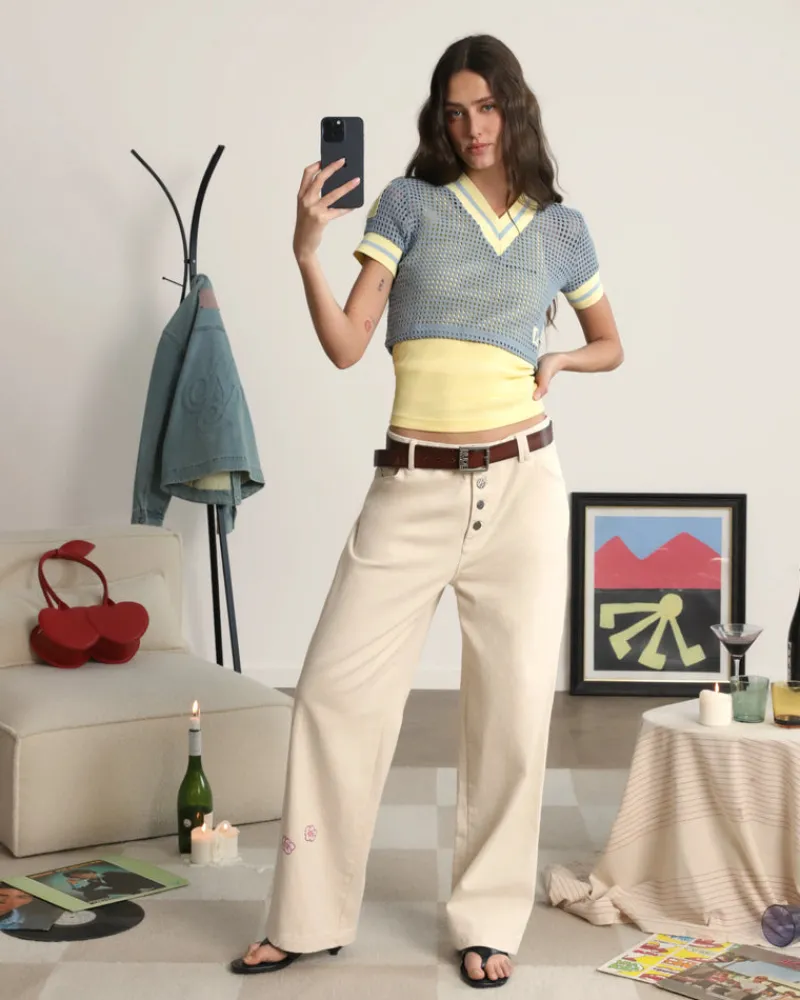 Composition:100% cottonFit:Regular cut + V neck.Graphic:Woven patches stitched on sleeves + decorative label on left hem…