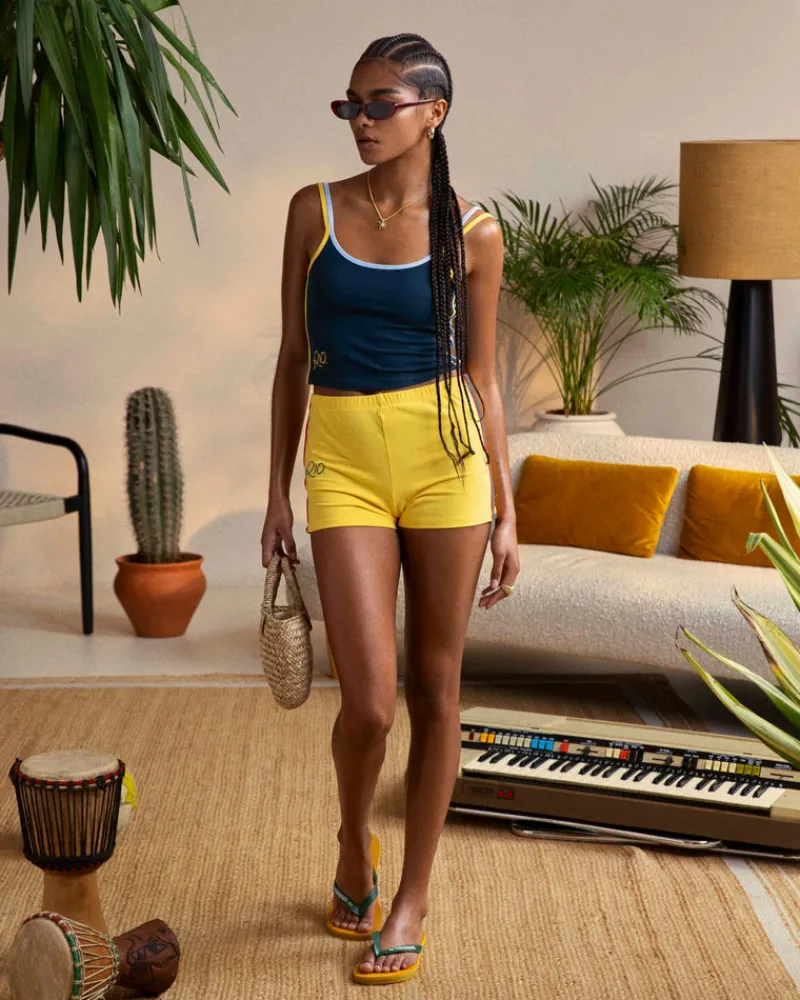 COMPOSITION:95% Cotton – 5% ElastaneFIT:Cropped tank topGRAPHIC:Front: Screen print TECHNICAL DETAILS:Double strap