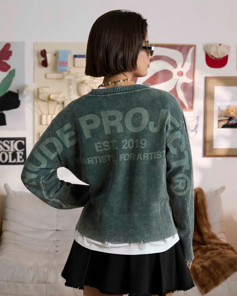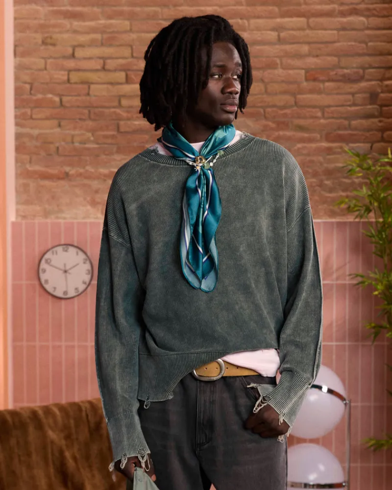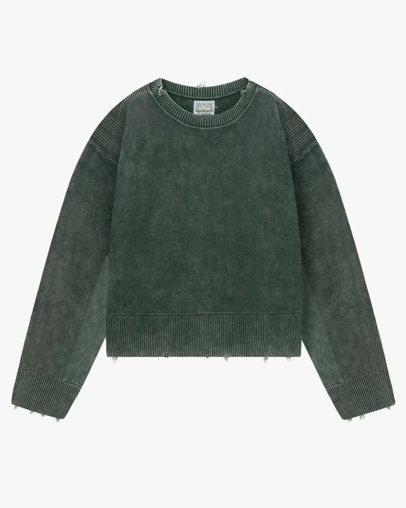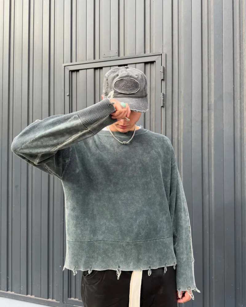 COMPOSITION:100% cottonFIT:Boxy FitGRAPHIC:Unique Garment dye wash.TECHNICAL DETAILS:Distressed effect and wide ribbed h…