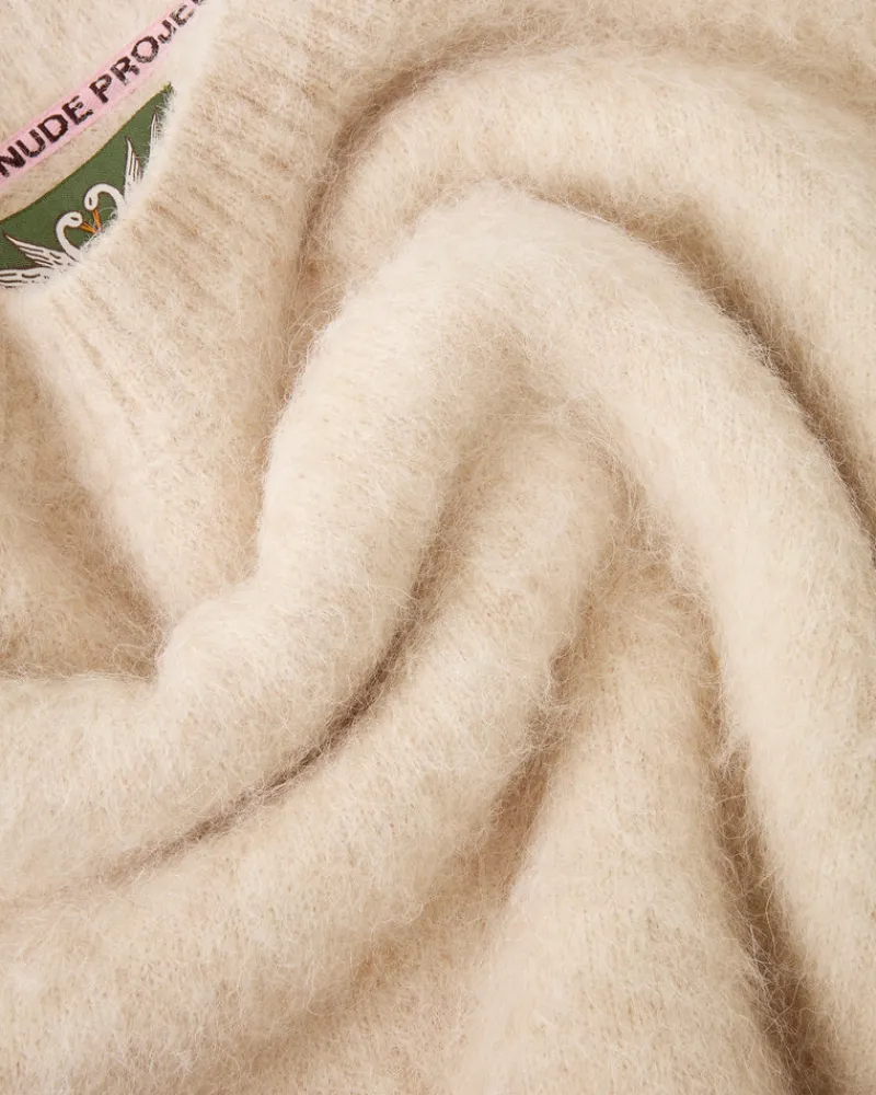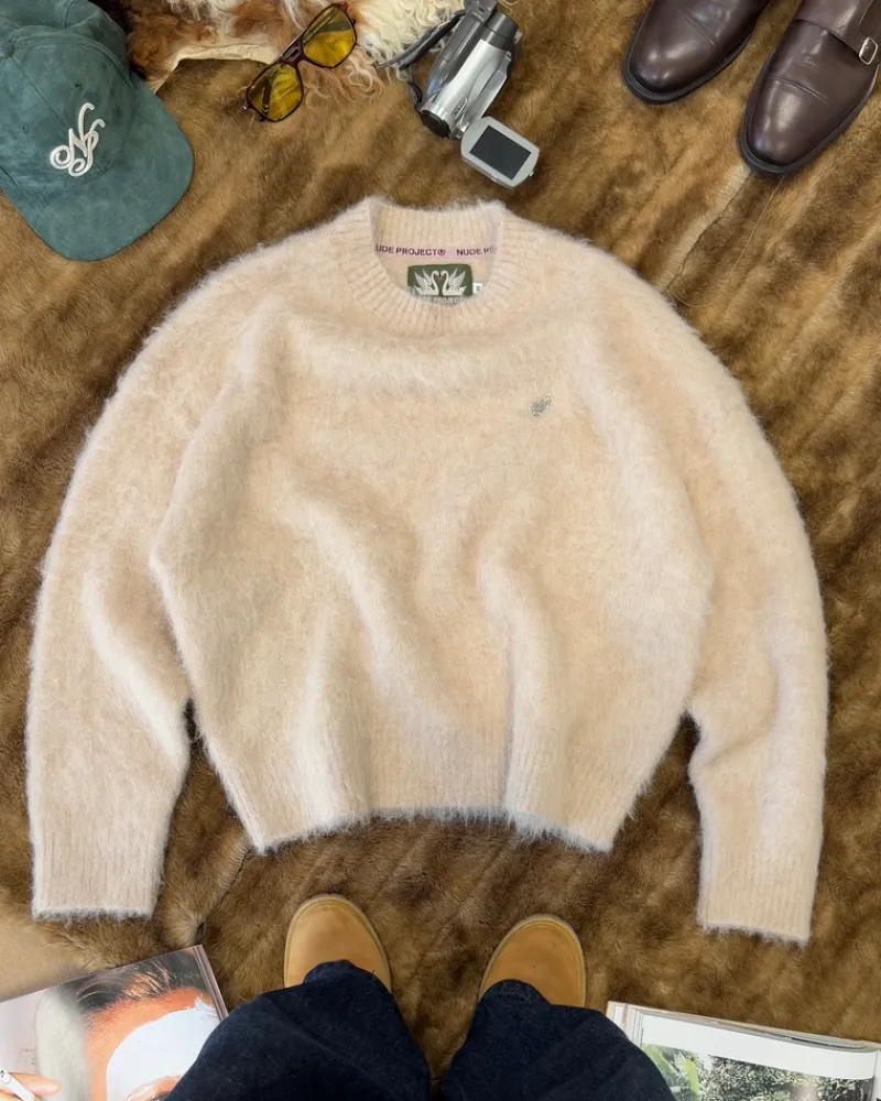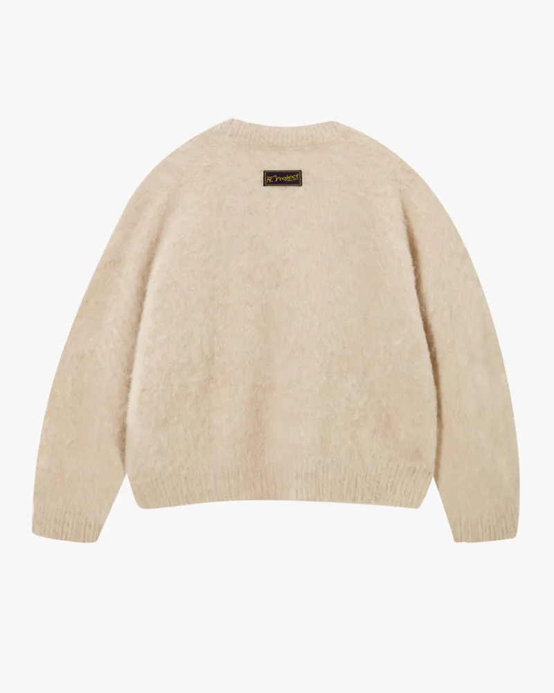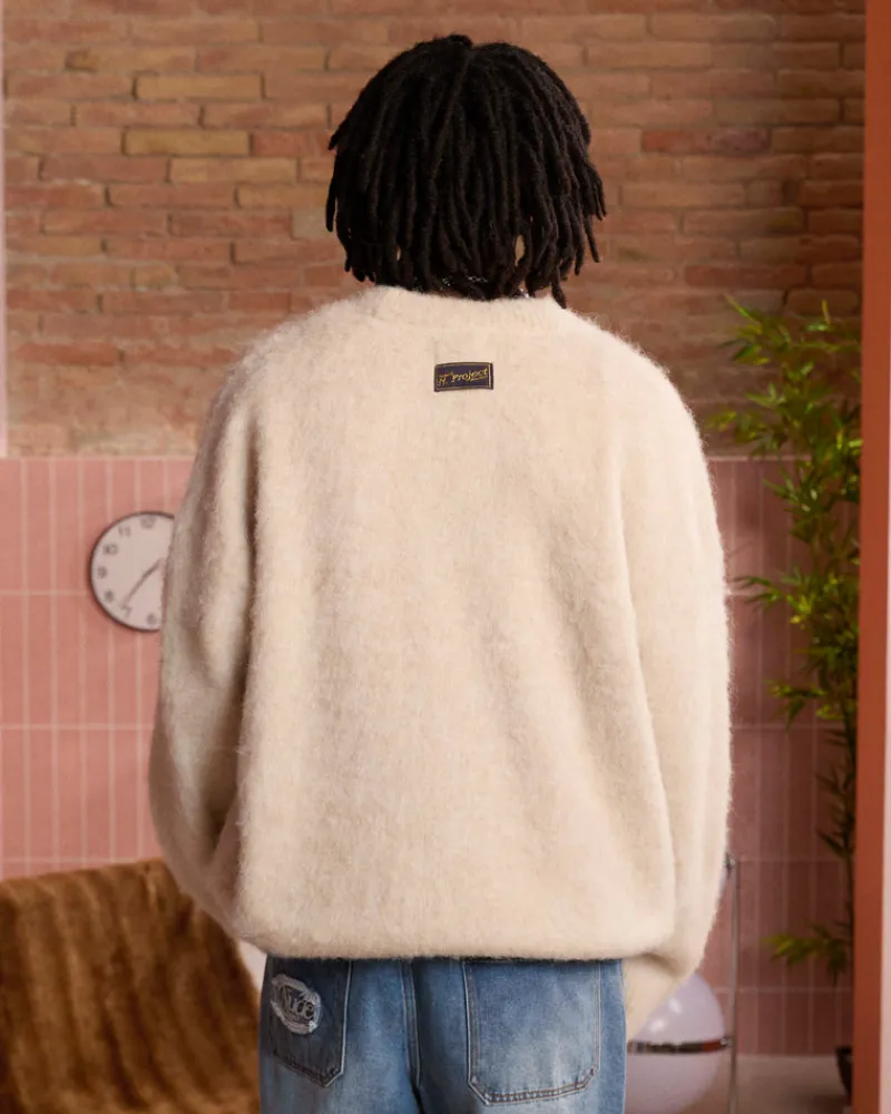 COMPOSITION:Yarn: 37,4% Alpaca 34,9% Wool 26,5% Nylon 1,5% ElastaneFIT:Boxy fit GRAPHIC:Front: Custom metal pinTECHNICAL…