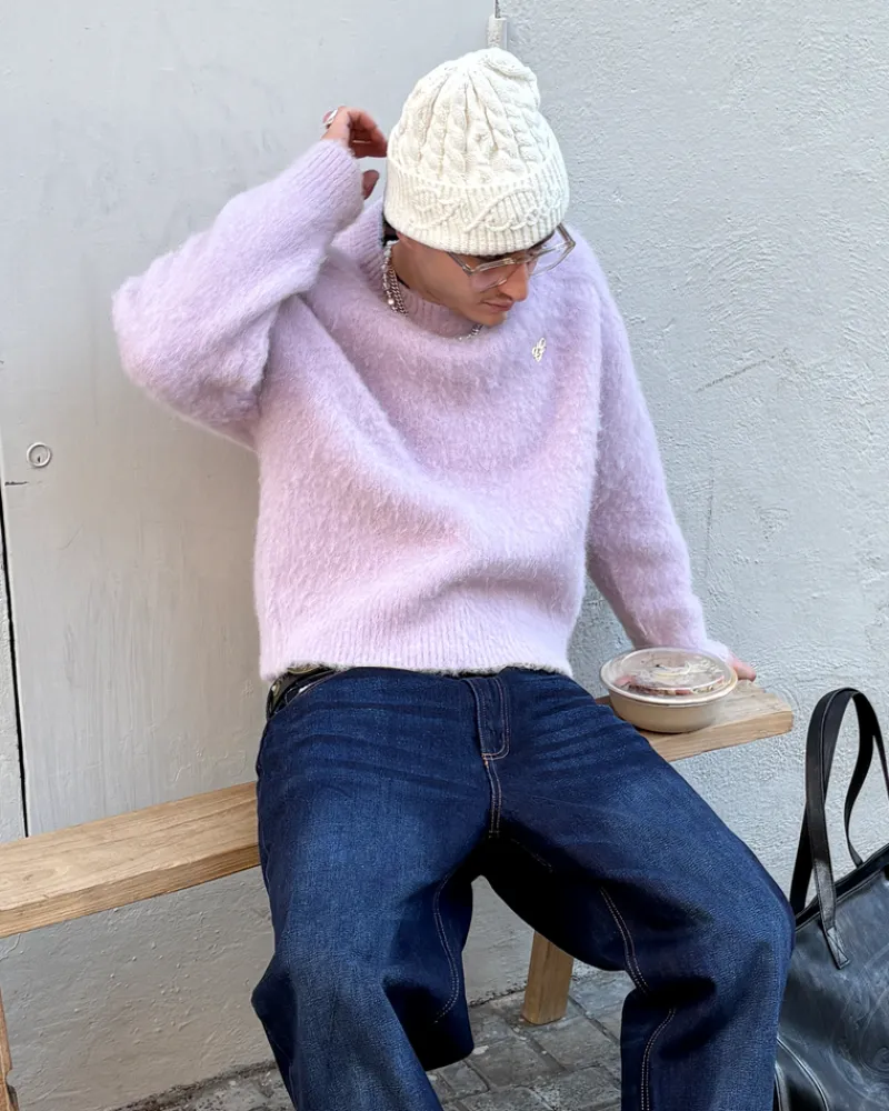 COMPOSITION:Yarn: 37,4% Alpaca 34,9% Wool 26,5% Nylon 1,5% ElastaneFIT:Boxy fit GRAPHIC:Front: Custom metal pinTECHNICAL…