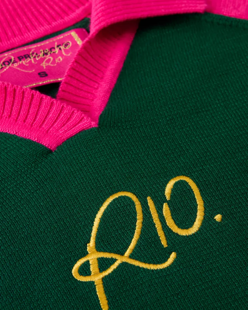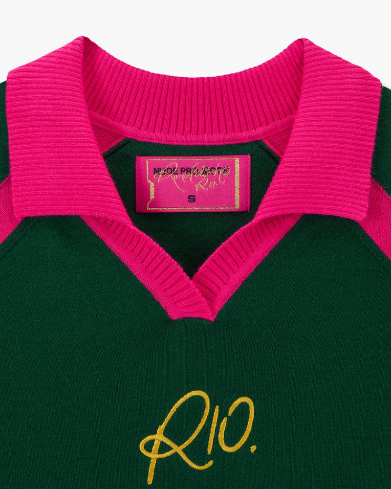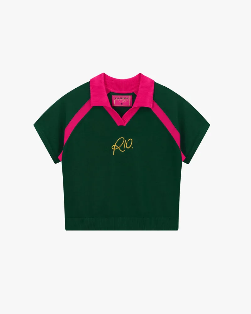 Knited polo with rib knit collar.