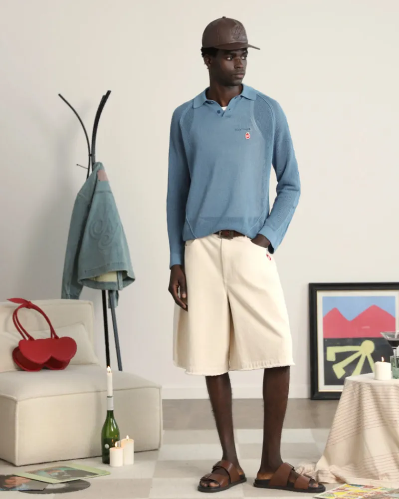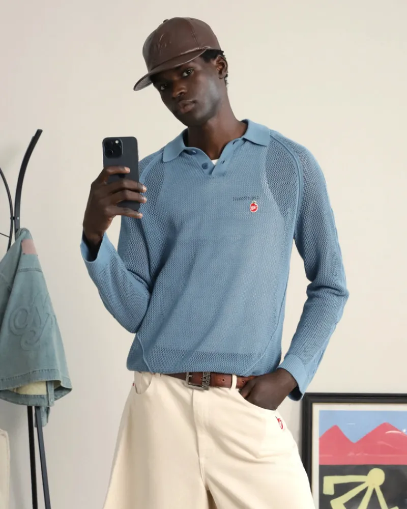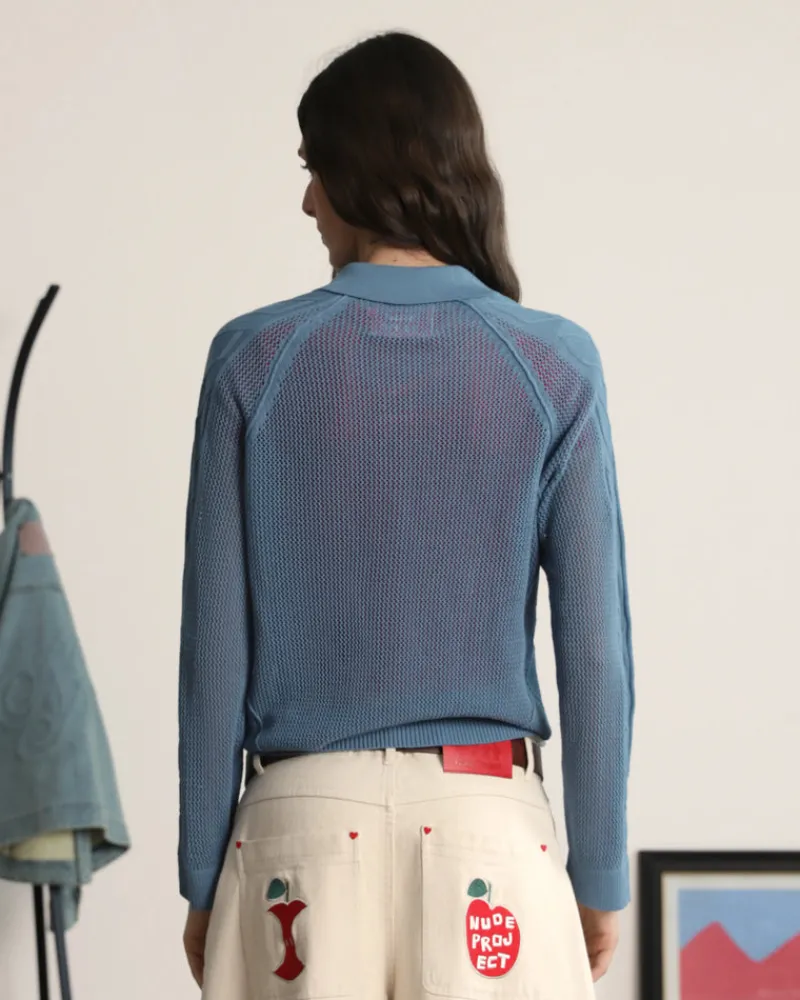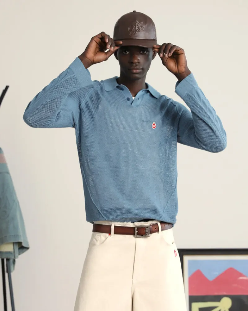 Composition:100% cottonFit:Loose fit Graphic:PatchTechnical details:Knit polo with ranglan sleeves and open structure