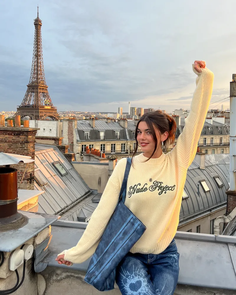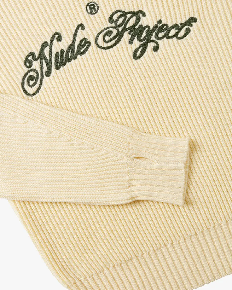 Pearl knit crewneck with front chain stitching