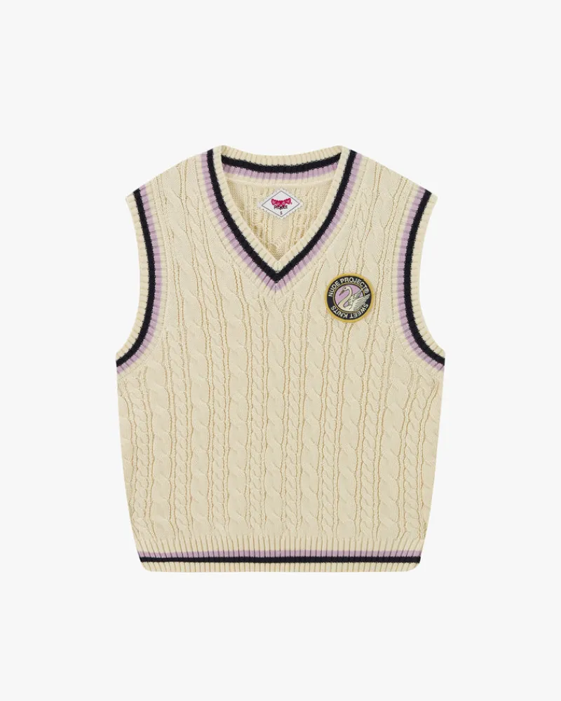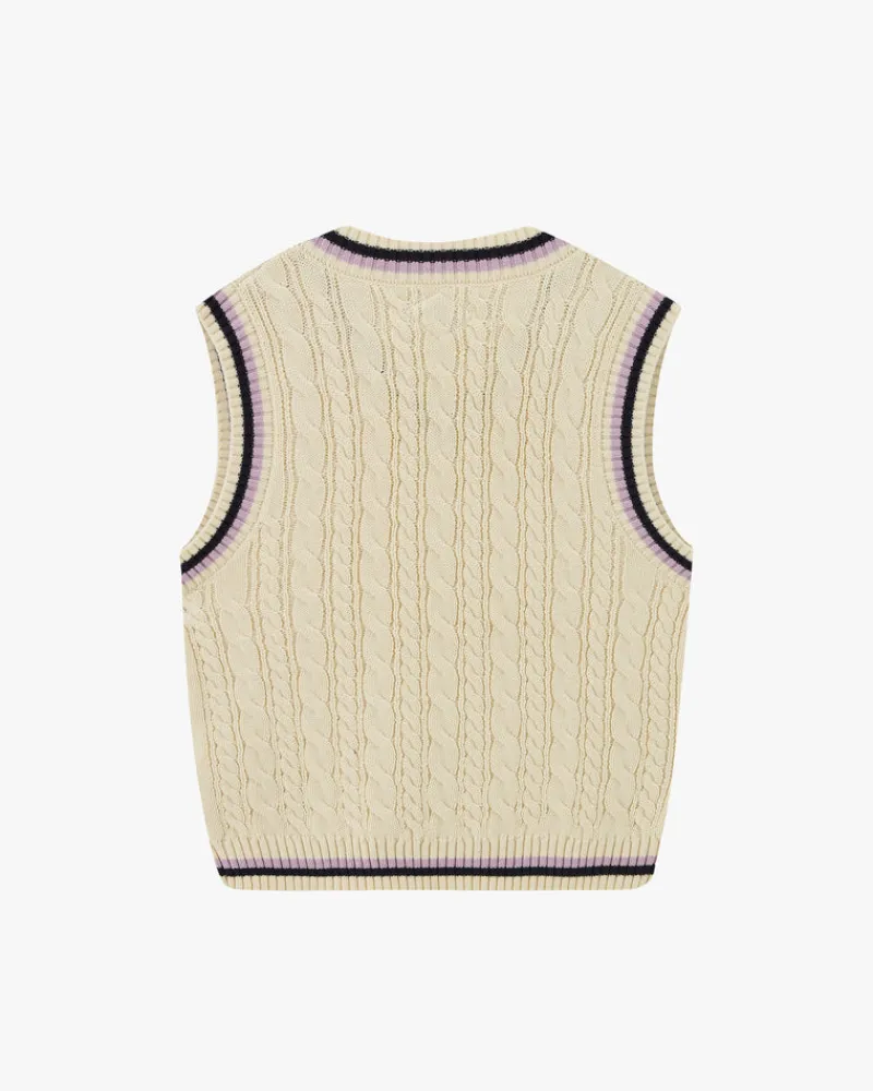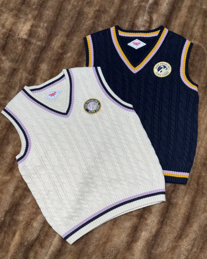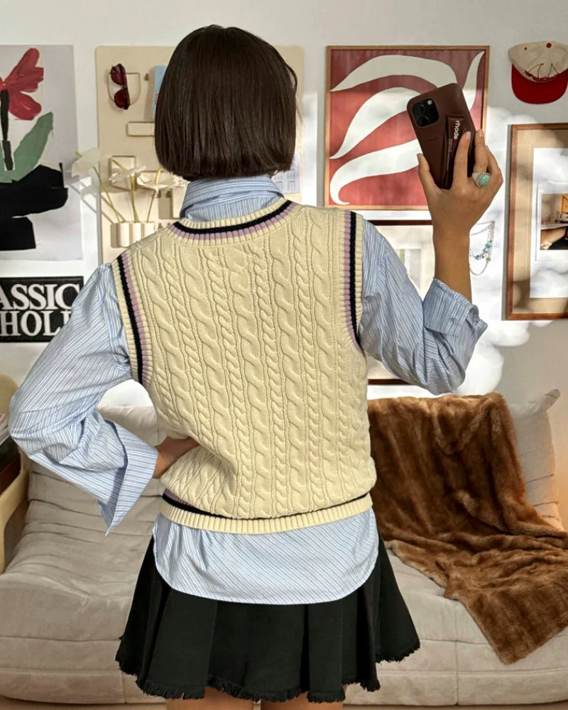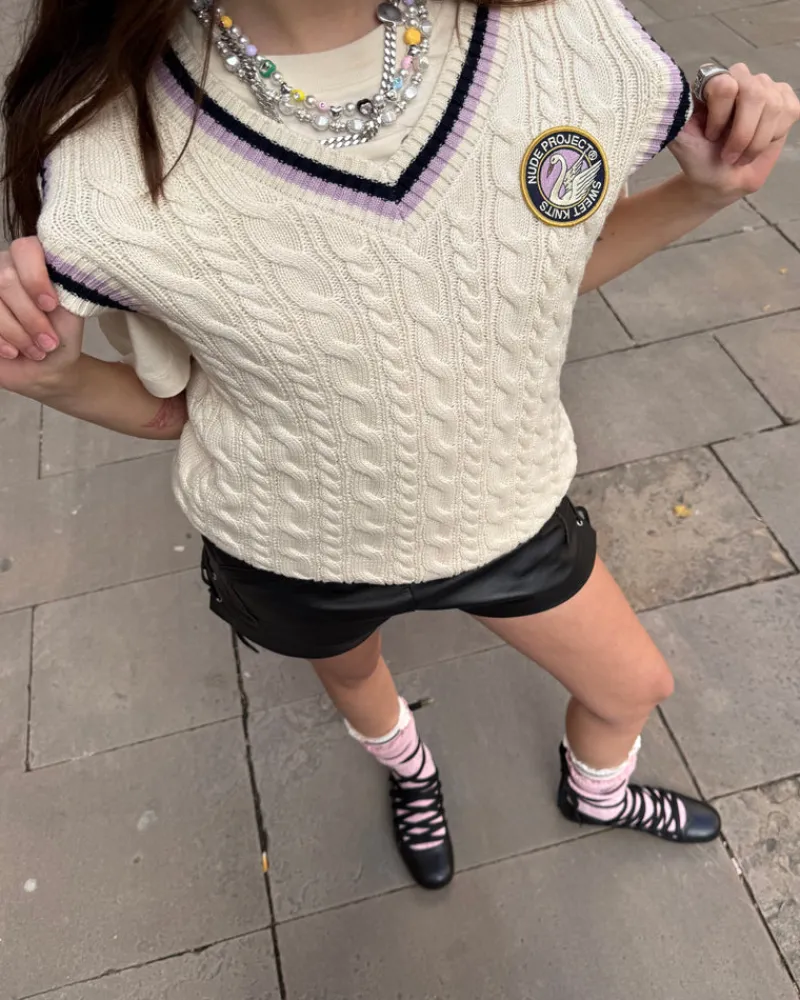 Jacquard lines in contrast color on ribs.