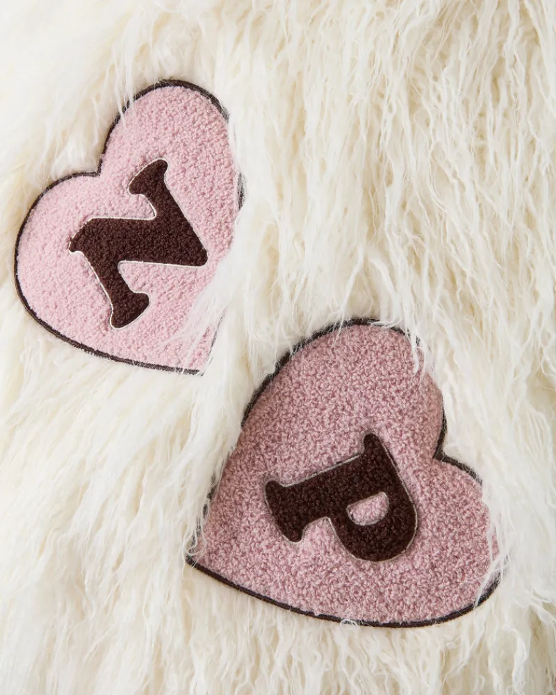 N & P embroidered heart patches on back.