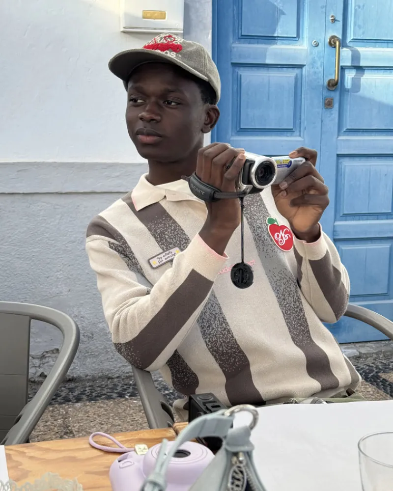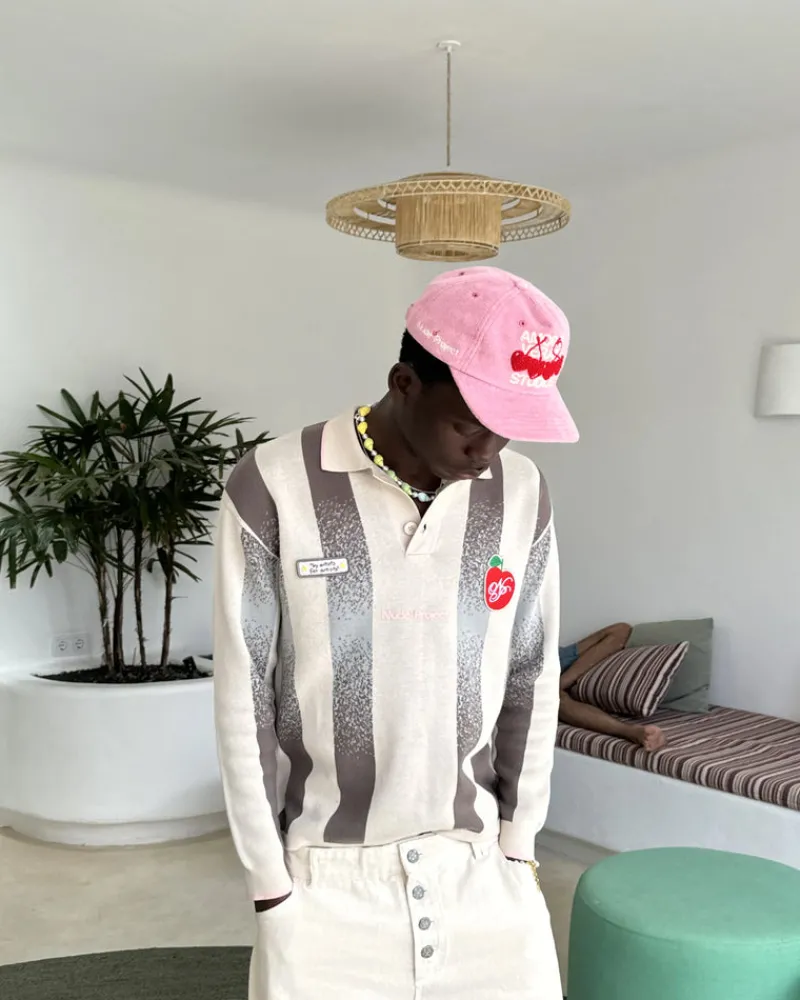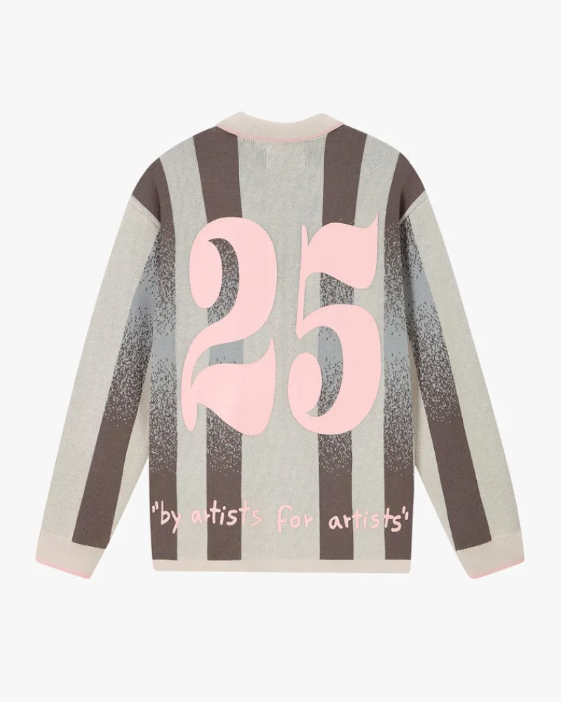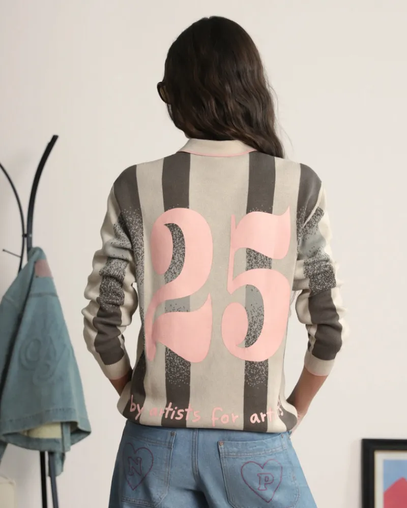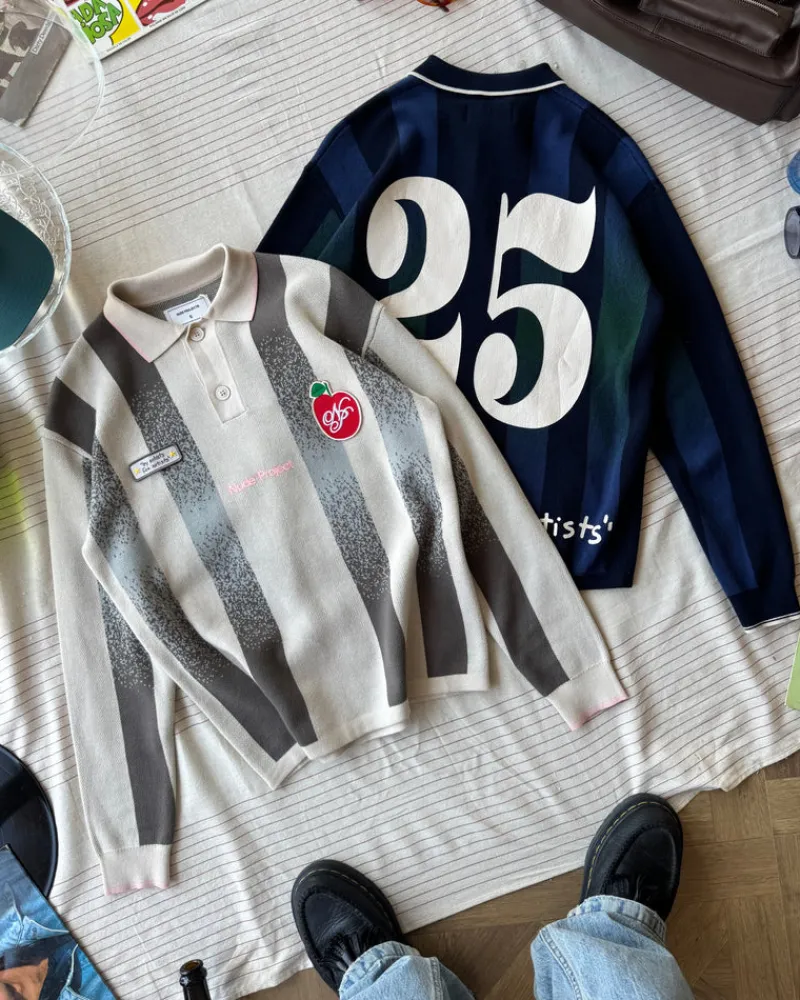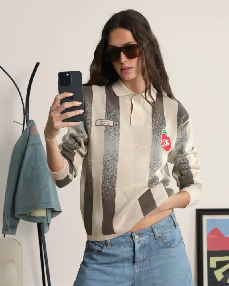 Long sleeve polo with jaquard srtipes