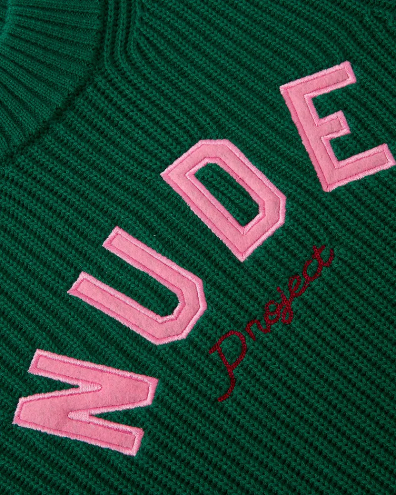 Nude Project varsity logo in combined techniques.