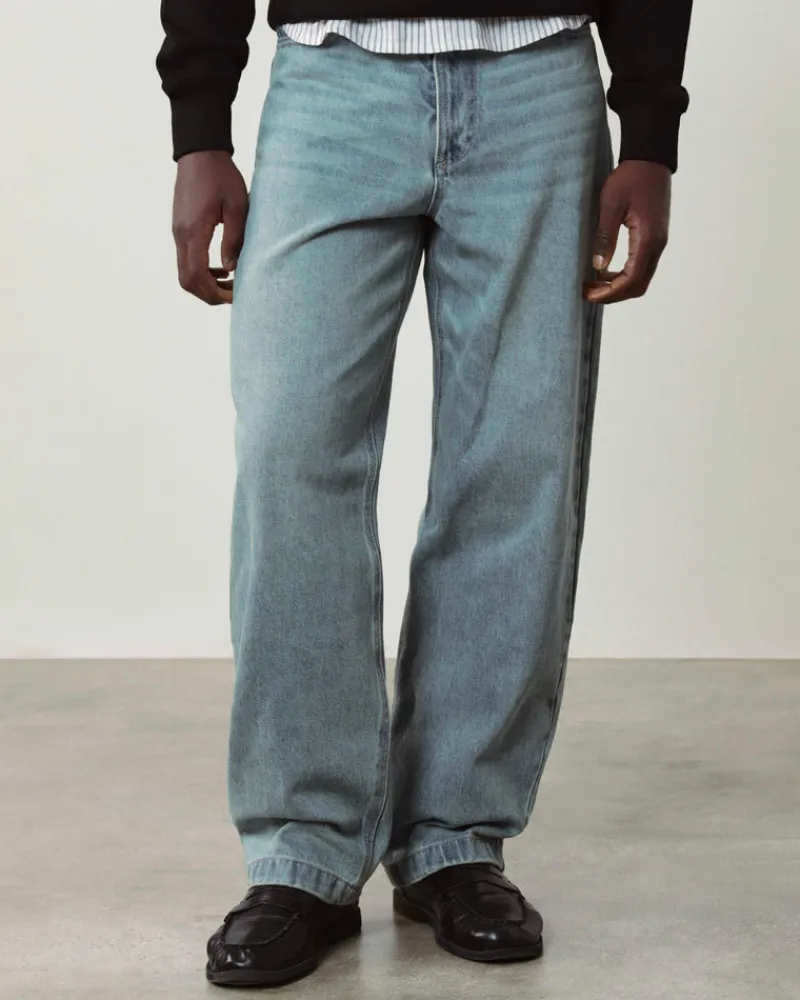 COMPOSITION:-100%CottonFIT:- Soft straightTECHNICAL DETAILS:- Custom medium blue wash.- Light whiskers wasted effect on …