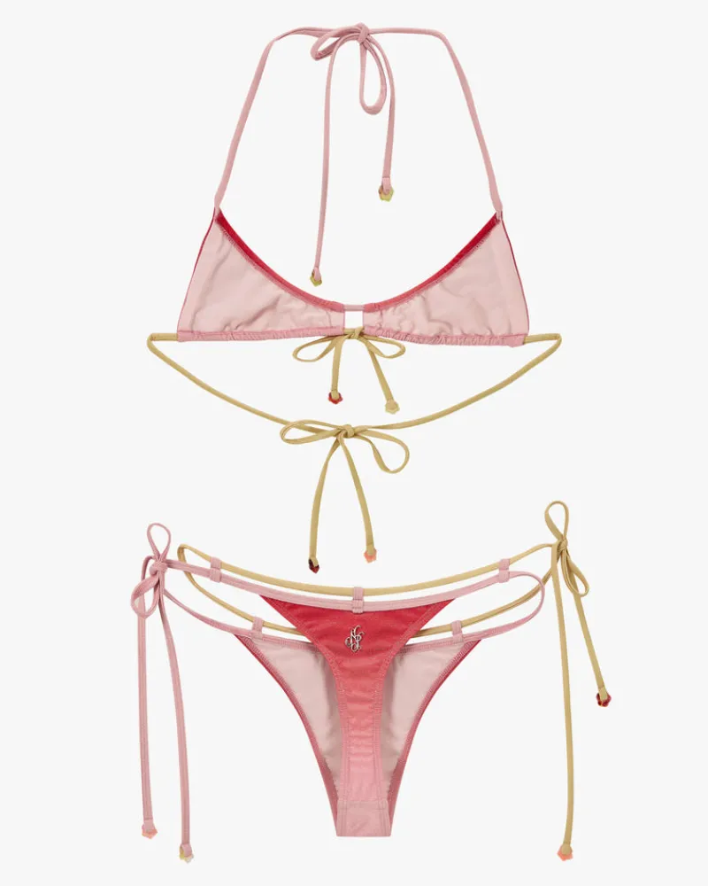 Hanging charms over the bikini cords.
