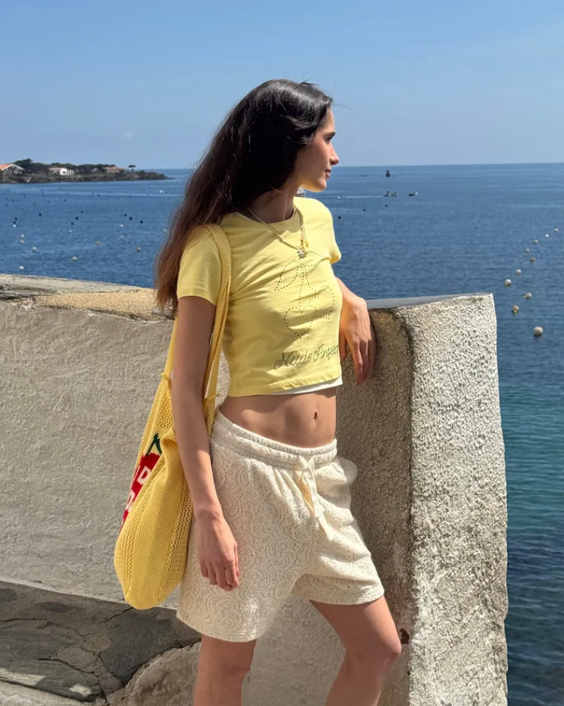 COMPOSITION:100% CottonFIT:Baby tee longGRAPHIC:Hot fix appliqueTECHNICAL DETAILS:-