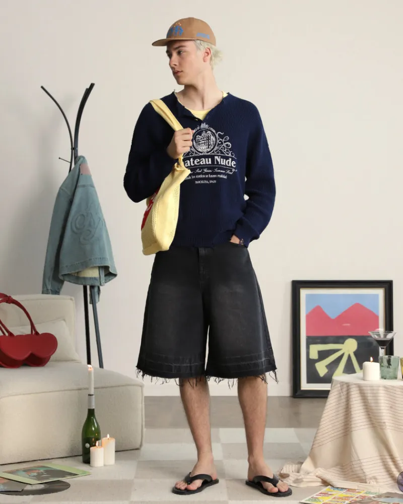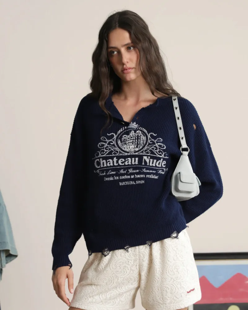 Composition:100% Fit:Loose fit Graphic:Screen printTechnical details:Hanley collar with metalic buttons and distressed e…