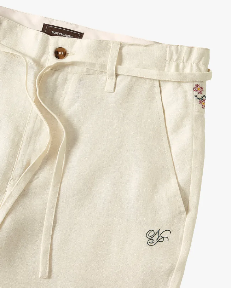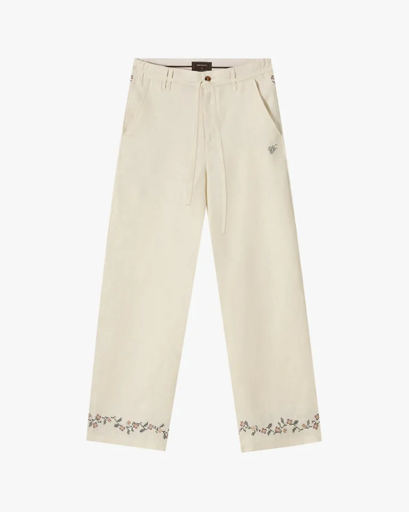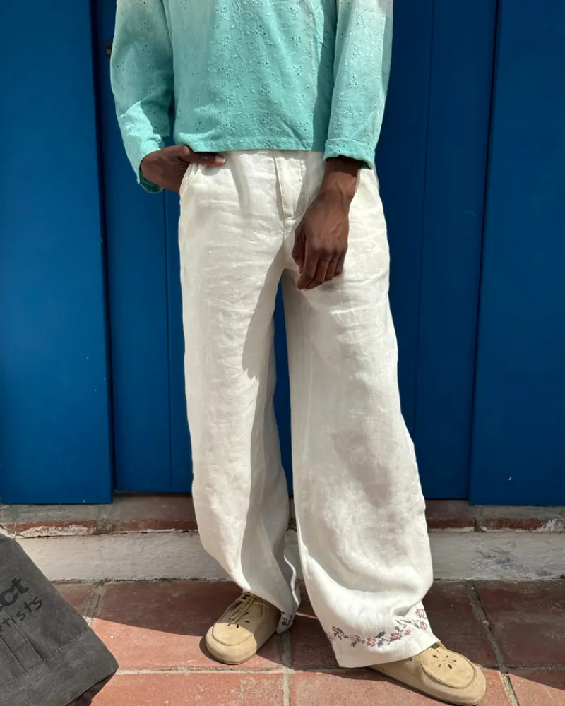 Composition: 100% LinenFit: Relaxed FitGraphic: Embroidery Flowers In Hip And AnklesTechnical Details: 100% Linen Tailor…