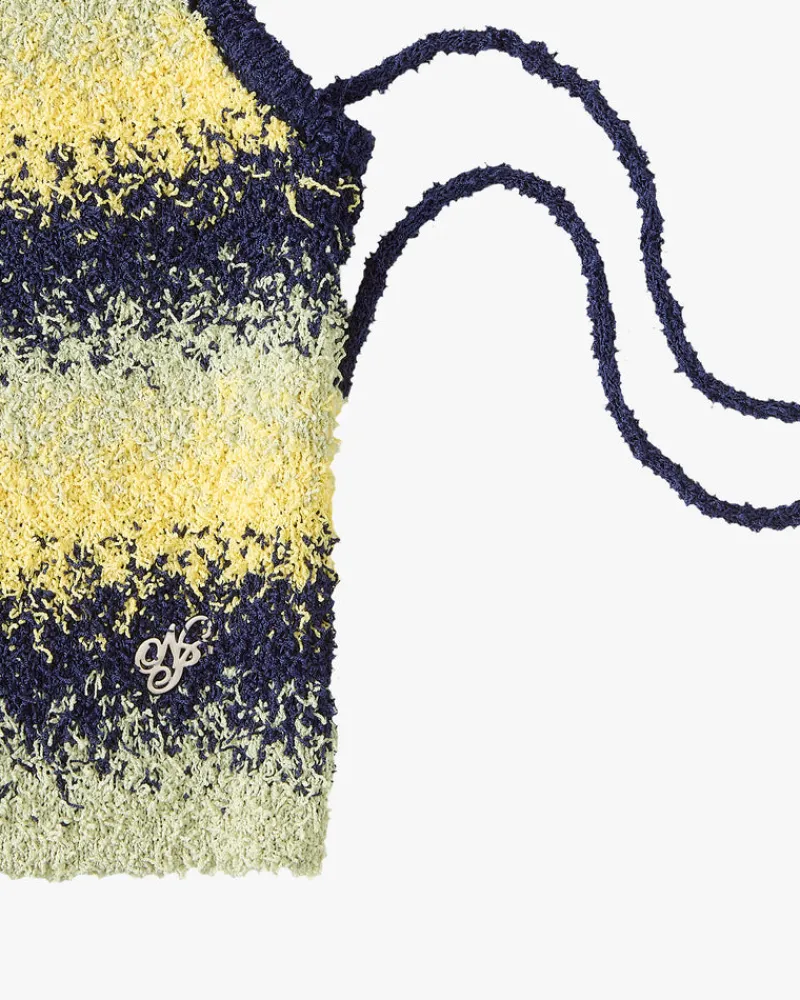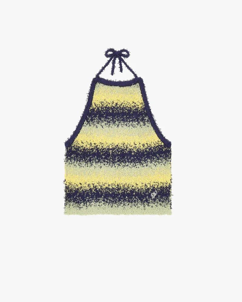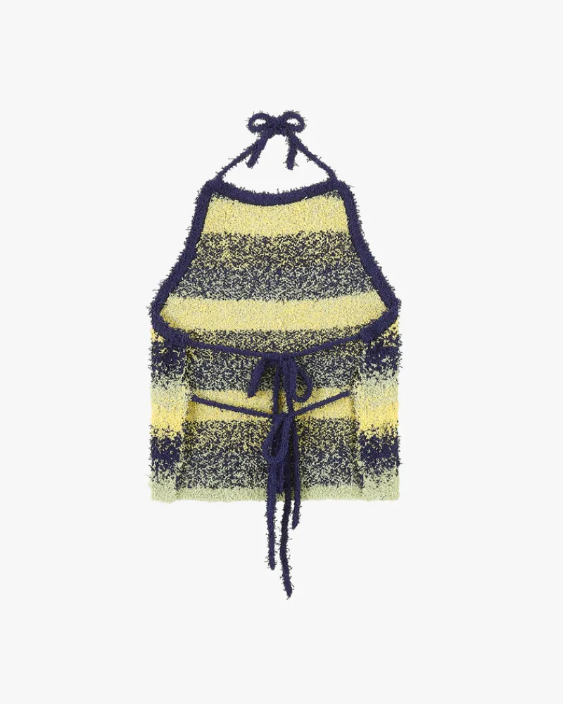 Halter top with. Open back laced with main fbric cords.