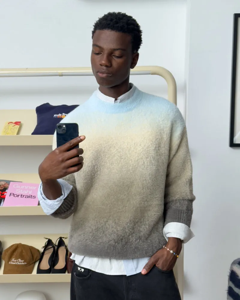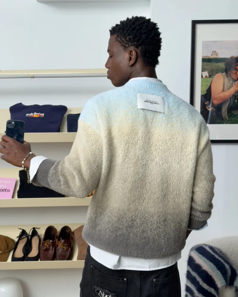 - Hairy knitted gradient sweater.