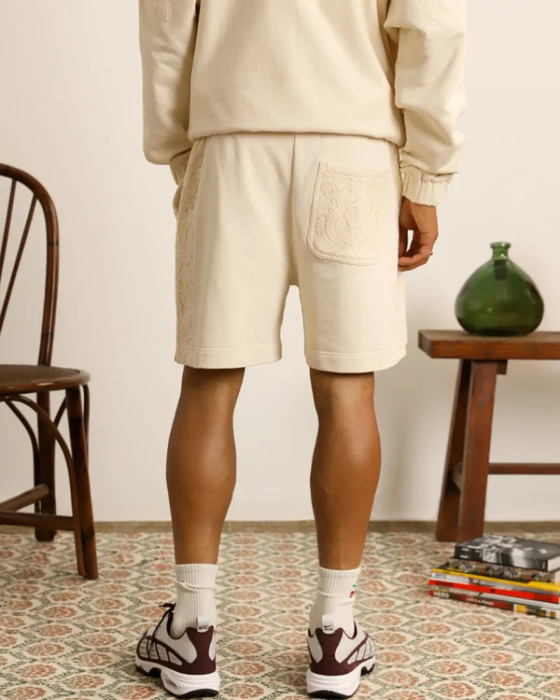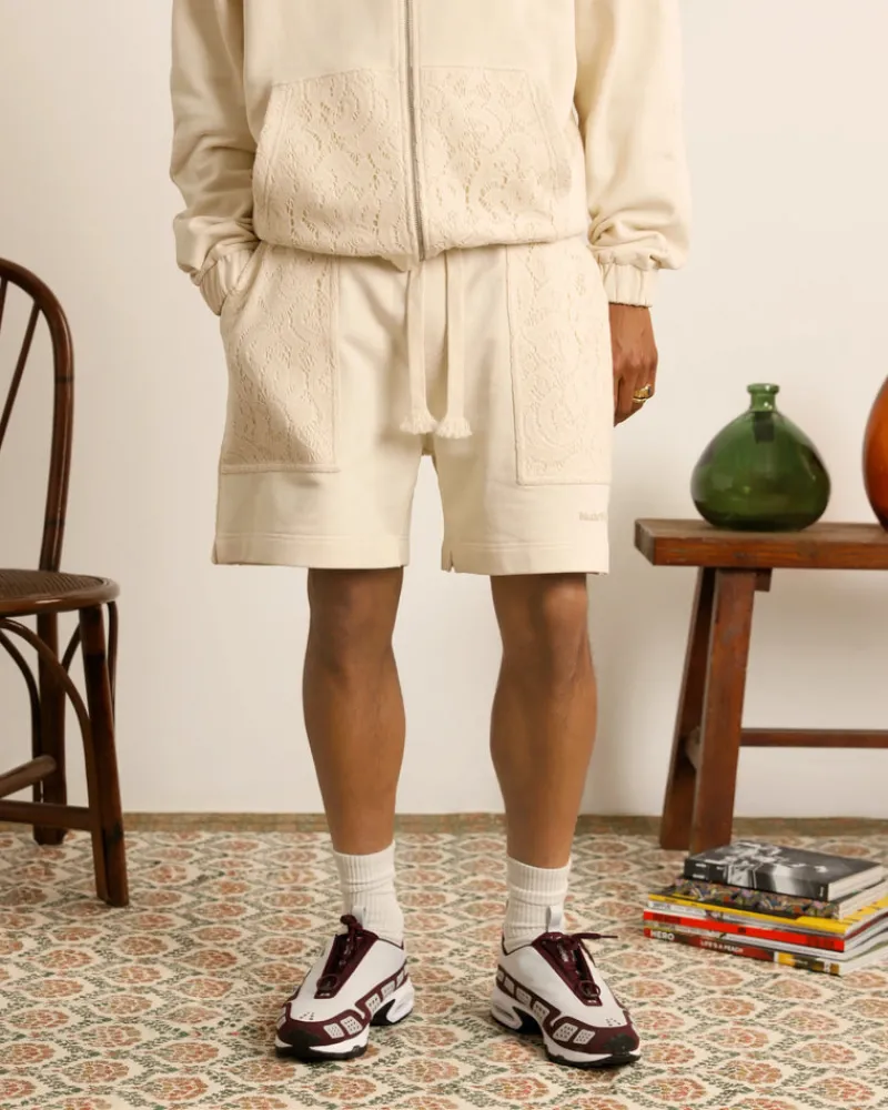 Composition:100% cottonFit:Standard fit Graphic: front fatigue pants with lace fabric patch Technical Details: