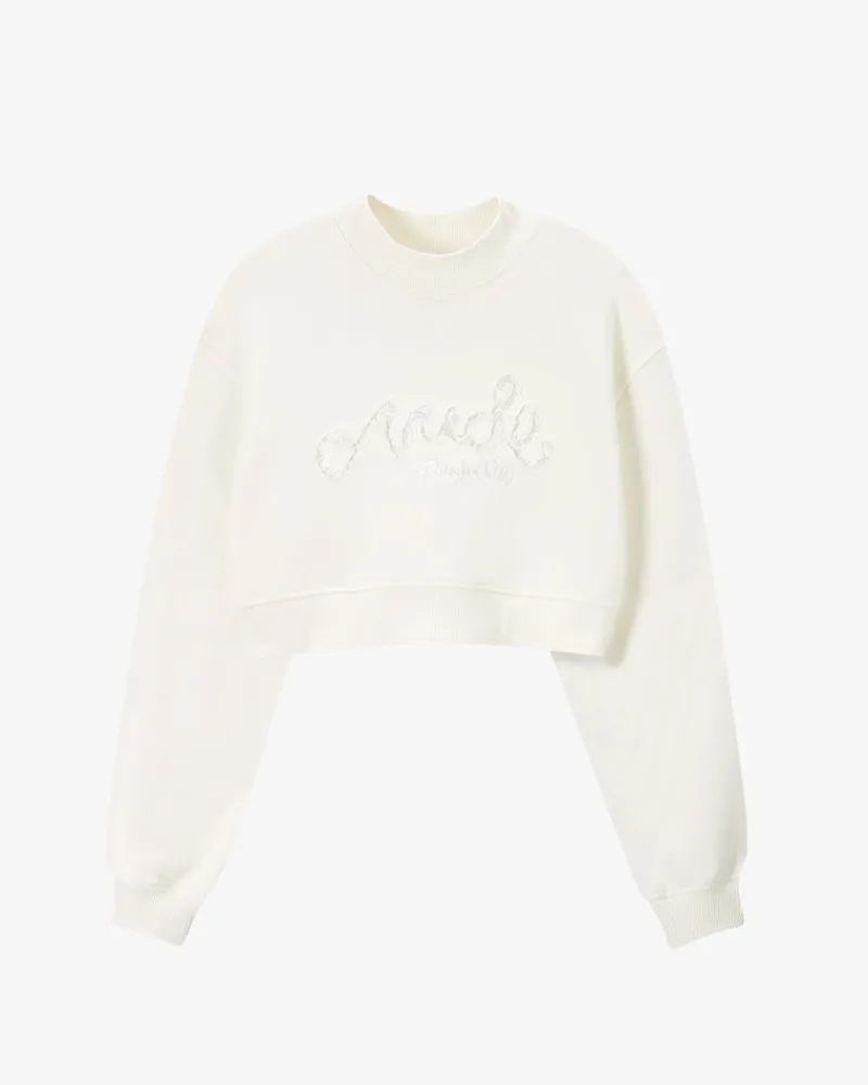 COMPOSITION:Shell Fabric: 65% Cotton 35% PolyesterFIT:Cropped. GRAPHIC:Lace patch with decorative stitching.TECHNICAL DE…