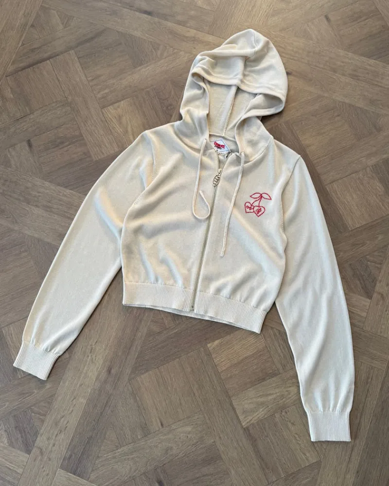 COMPOSITION:89% Viscose, 11% NylonFIT:Cropped hoodieGRAPHIC:Jacquard logo imitating cross stitch. TECHNICAL DETAILS:-