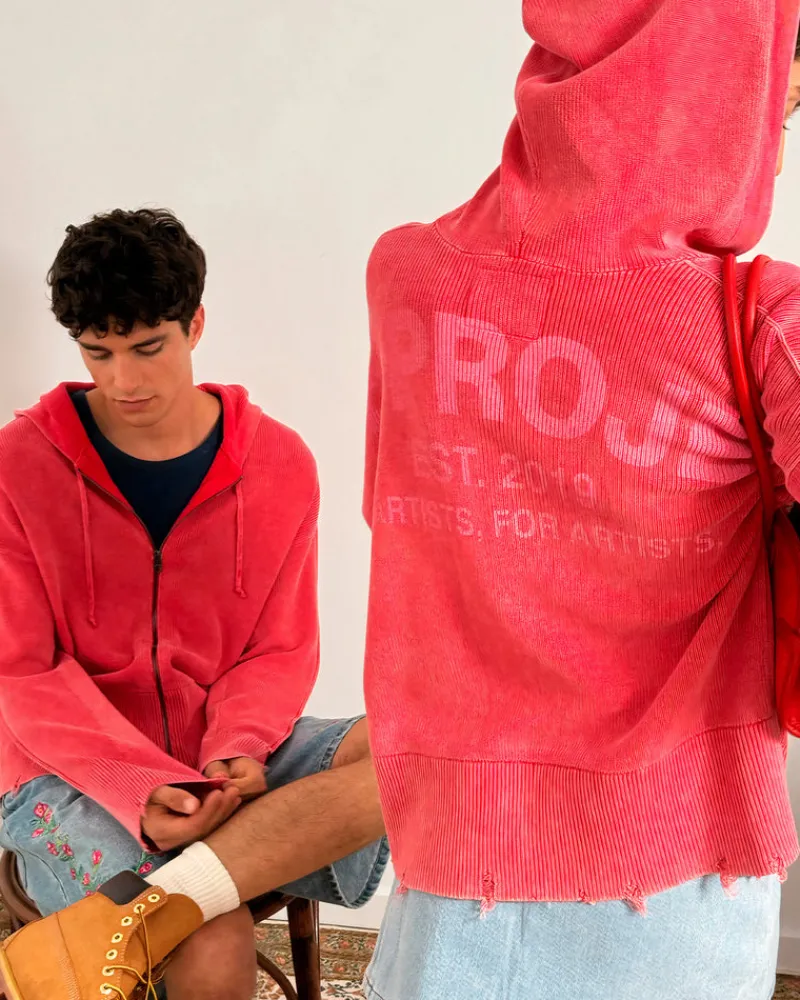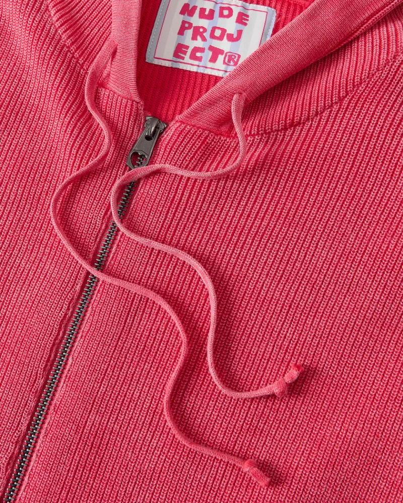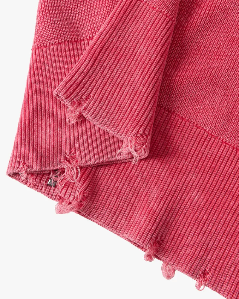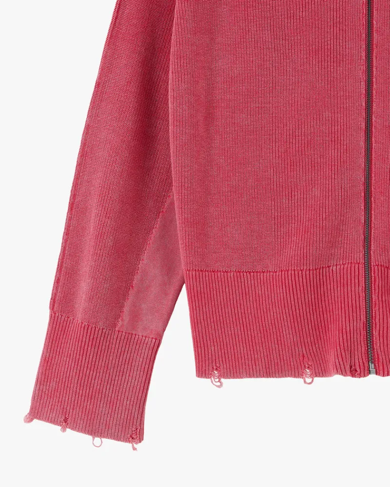 Knitted Hoodie With Garment Dye. Distressed Effect And Wide Ribbed Hem And Cuffs