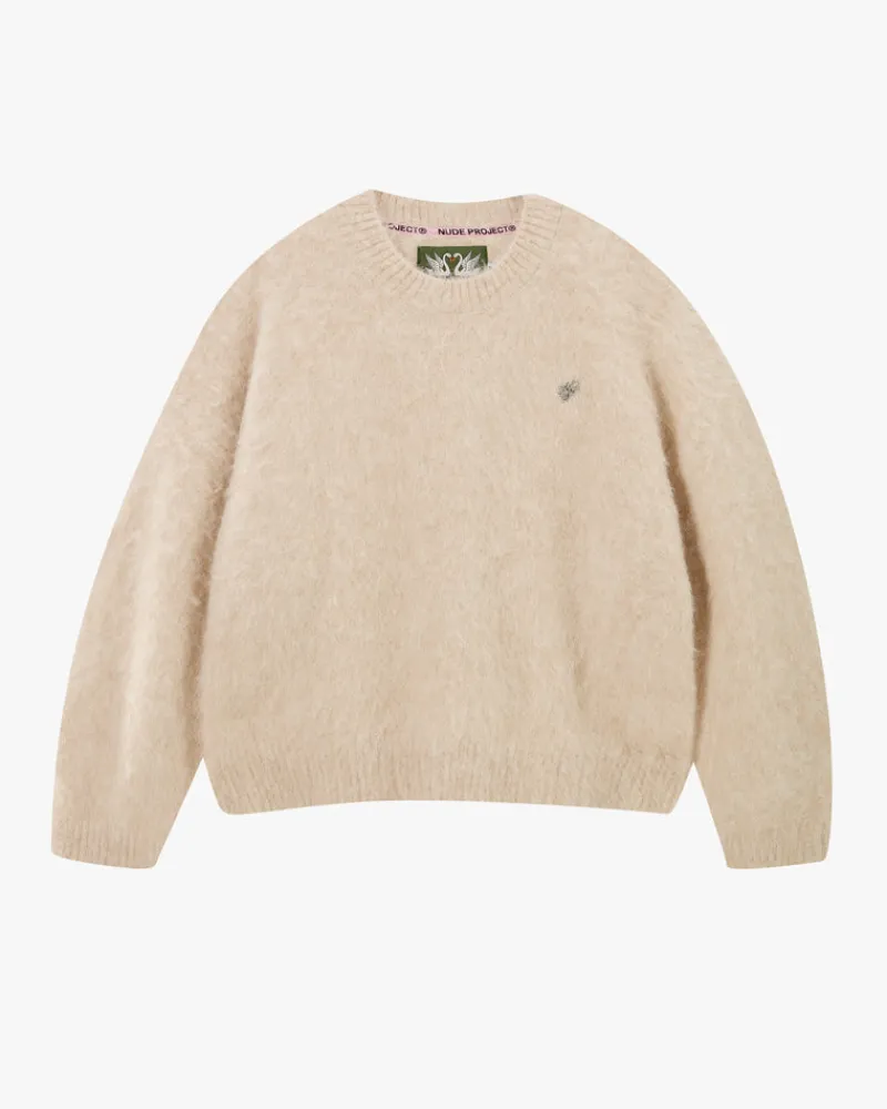 COMPOSITION:Yarn: 37,4% Alpaca 34,9% Wool 26,5% Nylon 1,5% ElastaneFIT:Boxy fit GRAPHIC:Front: Custom metal pinTECHNICAL…