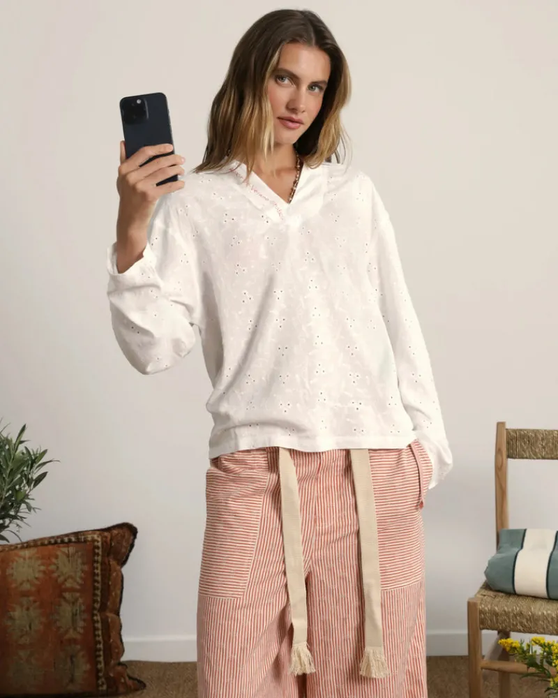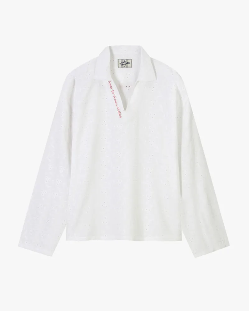 Composition:100% CottonFit:Soft Relaxed FitTechnical Details:Hand lettering embroidery open neck, decorative neck piece,…