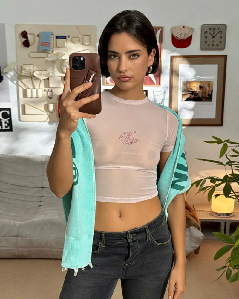 COMPOSITION:Shell Fabric: 95% Polyester 5% ElastaneFIT:Baby tee. Hip lenght.GRAPHIC:Logo ropmantic “NP” with strass. TEC…