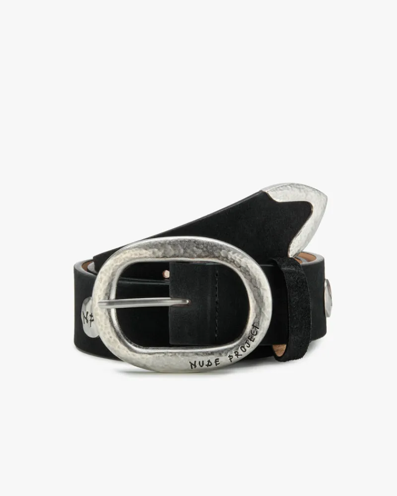 95% GENUINE LEATHER 5% BRASS Genuine suede leather with a soft yet durable finish. Hammered metal buckle for a rugged, vintage-inspired look.