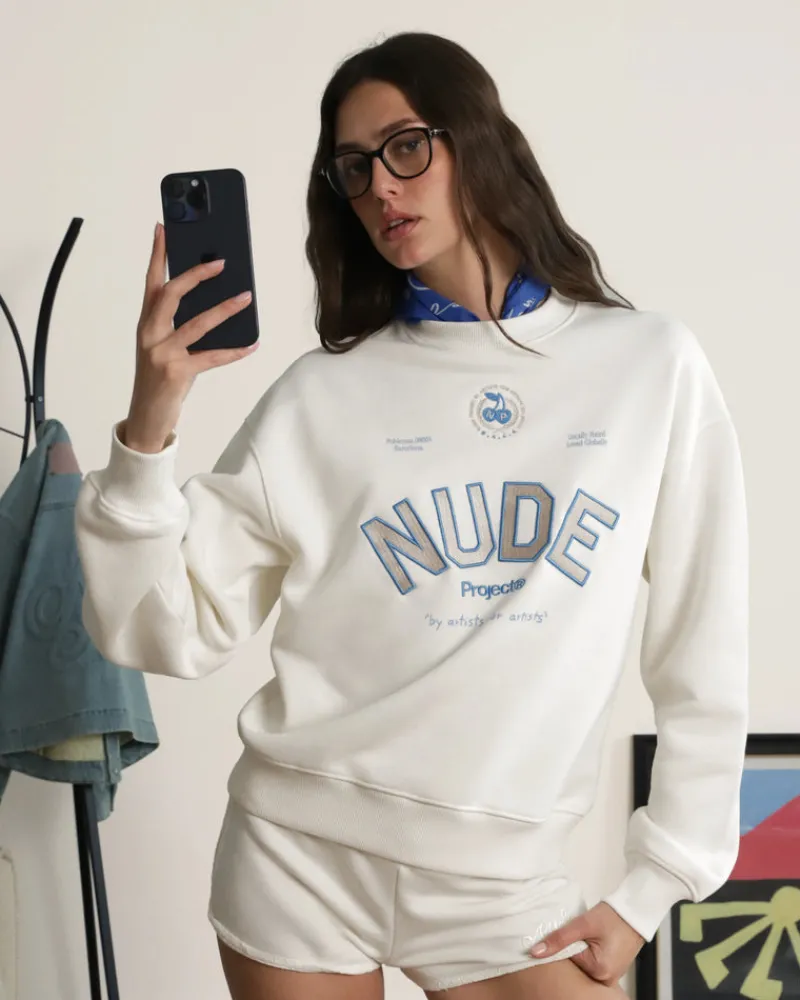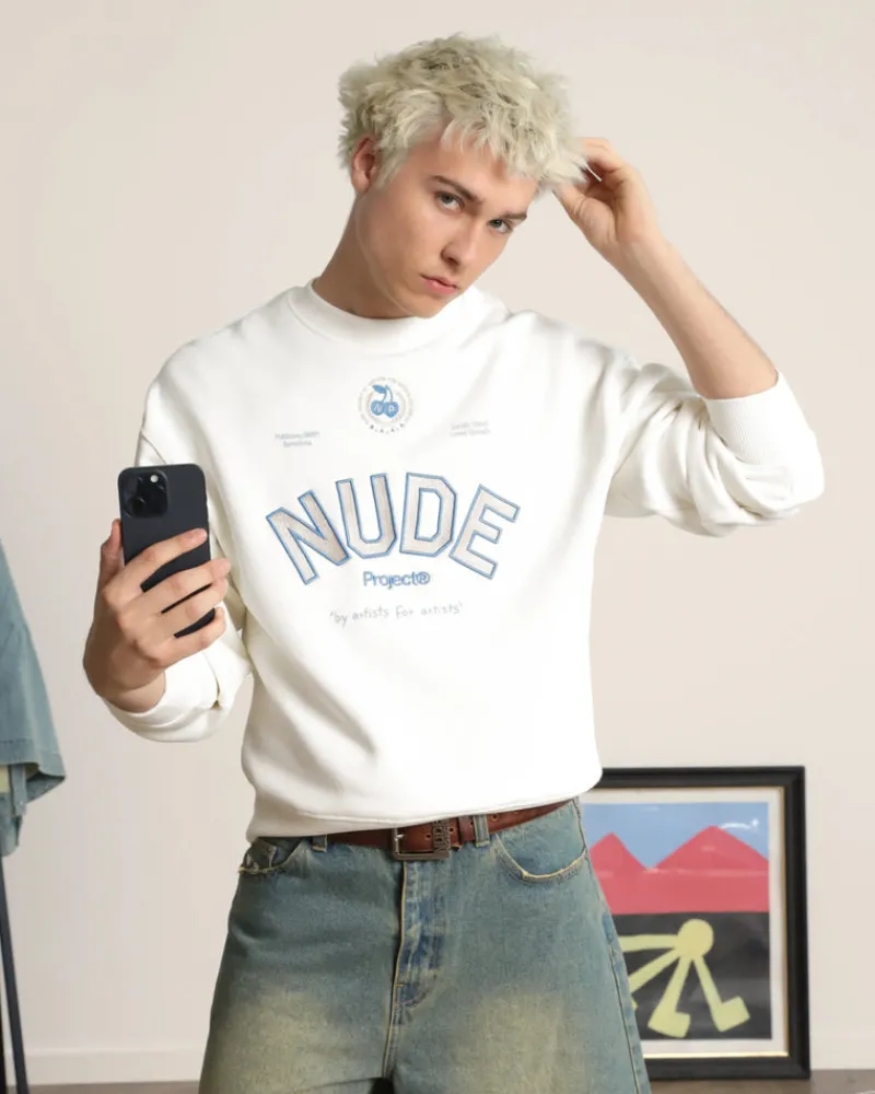 Screen print, chain stitching and embroidery front graphics