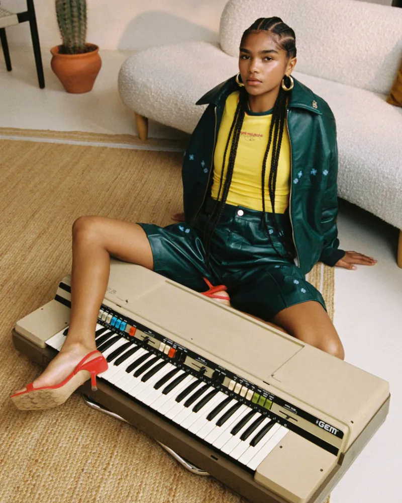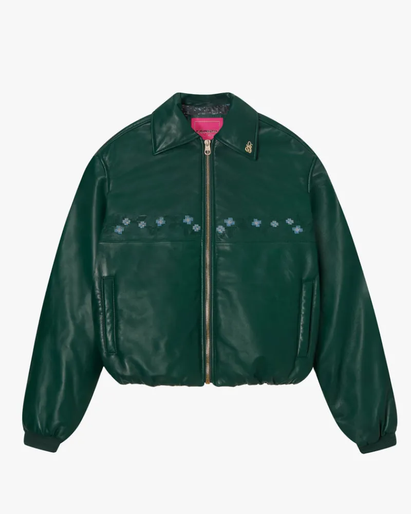 COMPOSITION:100% LeatherFIT:Boxy fitGRAPHIC:Flowers: Embroidery cross sttitch Patch: EmborideryBack R10 signature: Debos…